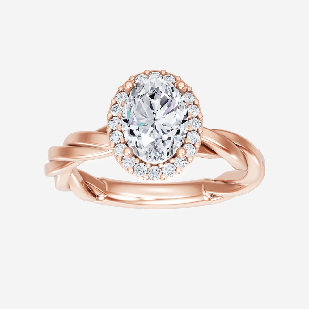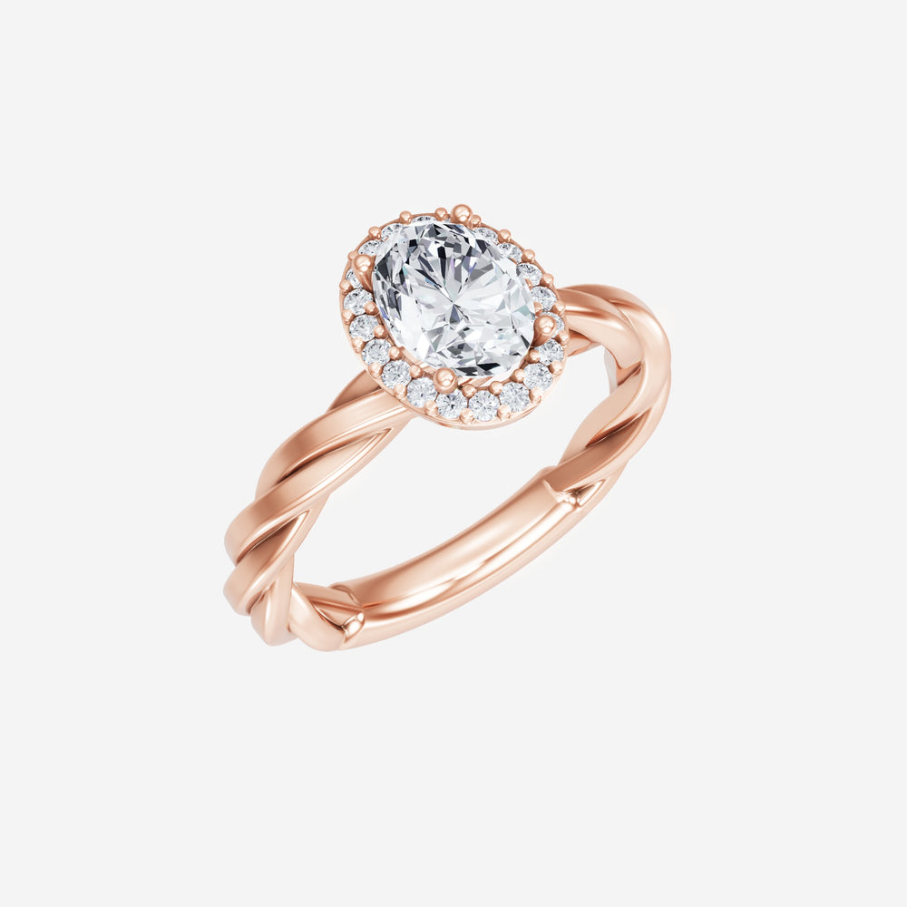 You’ve designed a ring that reflects lasting elegance and grace! Crafted from 14k Rose Gold, this exquisite Oval lab-grown diamond is the centerpiece of this unique design. This Rope Plain Shank with a Single Halo head showcases the brilliance of the Oval diamond, creating a timeless look. It's a piece of elegance and beauty, perfect for marking life's most beautiful occasions.