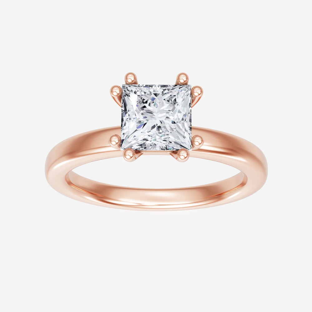 You’ve designed a ring that reflects lasting elegance and grace! Crafted from 14k Rose Gold, this exquisite Princess lab-grown diamond is the centerpiece of this unique design. This Basic Plain Shank with a 4 Prong Split Prong head showcases the brilliance of the Princess diamond, creating a timeless look. This stunning ring makes the perfect symbol of everlasting love and devotion.