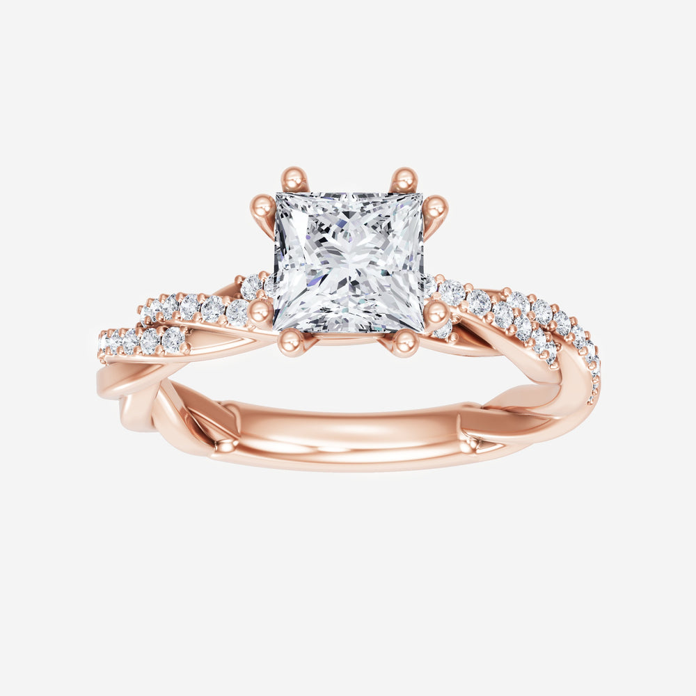You’ve designed a ring that reflects lasting elegance and grace! Crafted from 14k Rose Gold, this exquisite Princess lab-grown diamond is the centerpiece of this unique design. This Rope Diamond Shank with a 4 Prong Split Prong head showcases the brilliance of the Princess diamond, creating a timeless look. This elegant piece is the perfect symbol of love, strength, and timeless beauty.