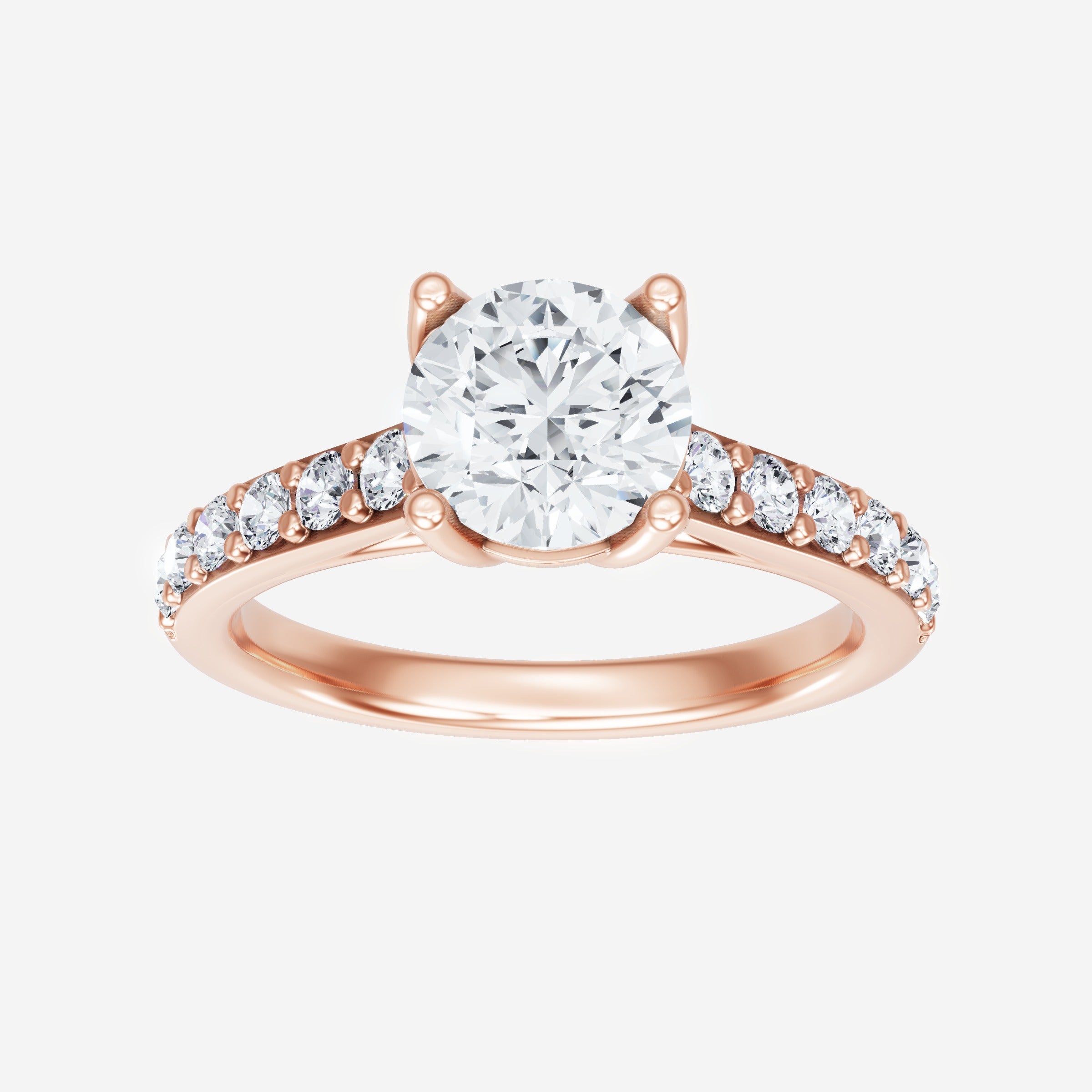 You’ve designed a ring that reflects lasting elegance and grace! Crafted from 14k Rose Gold, this exquisite Round lab-grown diamond is the centerpiece of this unique design. This Cathedral Diamond Shank with a 4 Prong Flower Head head showcases the brilliance of the Round diamond, creating a timeless look. This ring will become a cherished reminder of life's most treasured moments.
