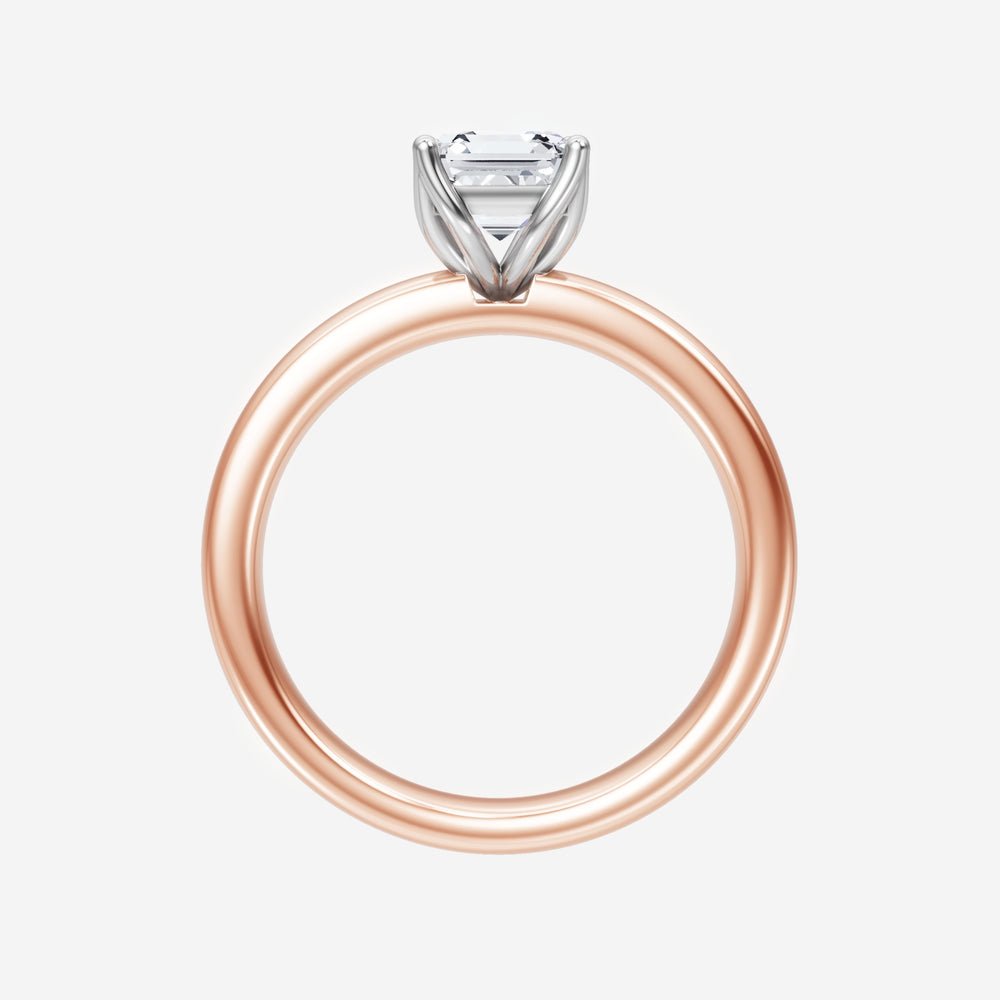 You’ve designed a ring that reflects lasting elegance and grace! Crafted from 14k Rose White Dual Tone, this exquisite Asscher lab-grown diamond is the centerpiece of this unique design. This Basic Plain Shank with a 4 Prong Flower Head head showcases the brilliance of the Asscher diamond, creating a timeless look. This elegant piece is the perfect symbol of love, strength, and timeless beauty.