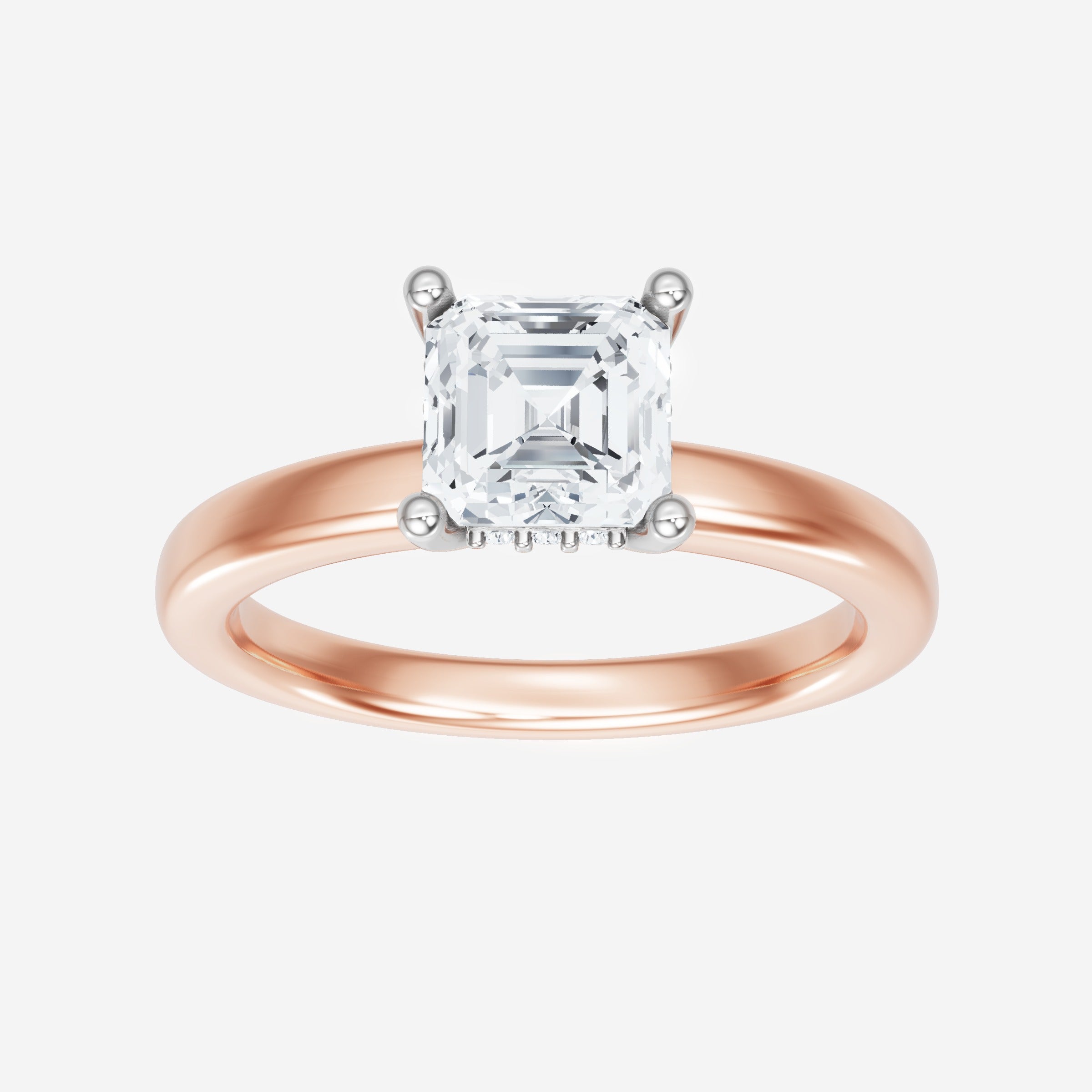 You’ve designed a ring that reflects lasting elegance and grace! Crafted from 14k Rose White Dual Tone, this exquisite Asscher lab-grown diamond is the centerpiece of this unique design. This Basic Plain Shank with a Hidden Halo head showcases the brilliance of the Asscher diamond, creating a timeless look. This ring will become a cherished reminder of life's most treasured moments.