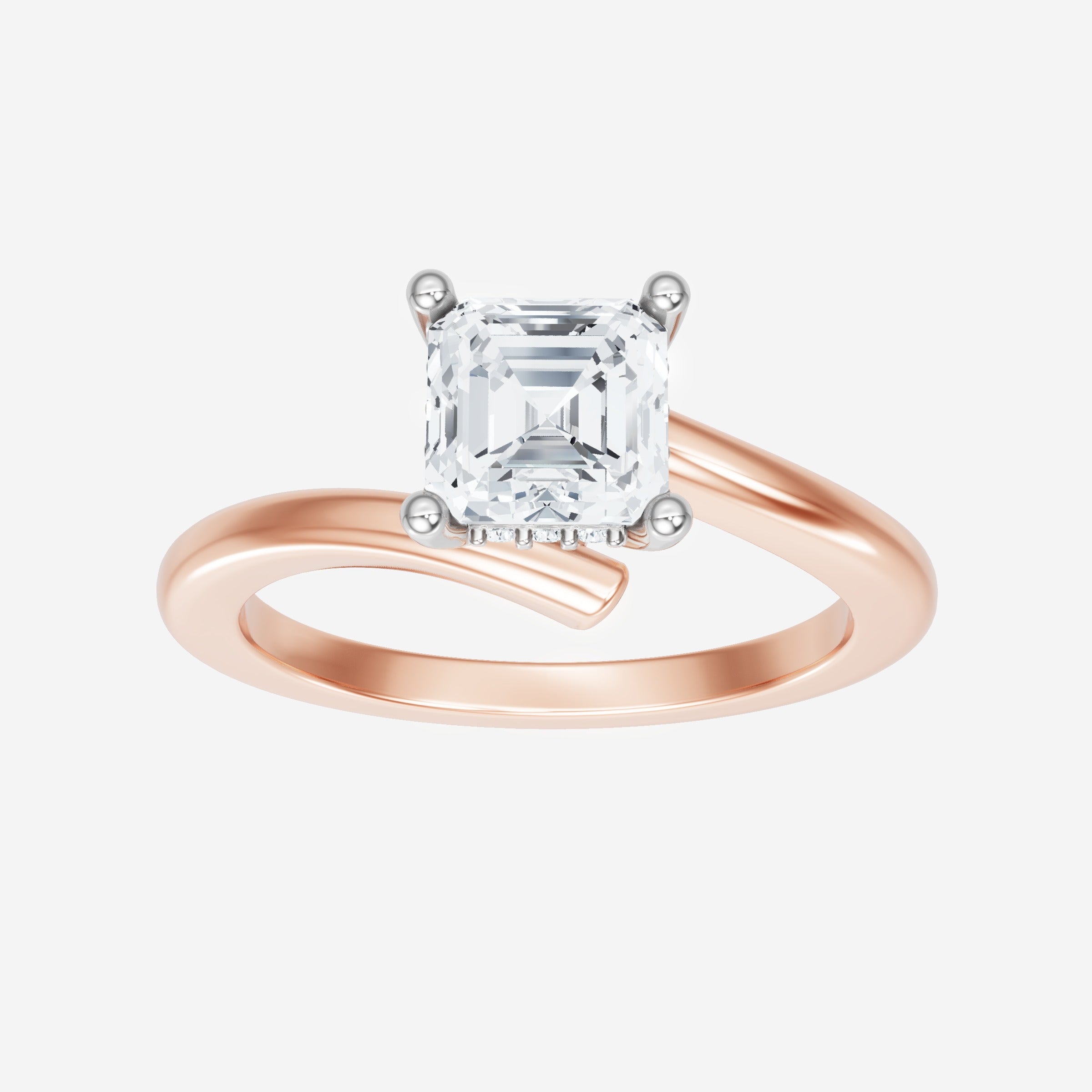 You’ve designed a ring that reflects lasting elegance and grace! Crafted from 14k Rose White Dual Tone, this exquisite Asscher lab-grown diamond is the centerpiece of this unique design. This Bypass Shank with a Hidden Halo head showcases the brilliance of the Asscher diamond, creating a timeless look. A perfect choice to celebrate love, commitment, and everything in between.