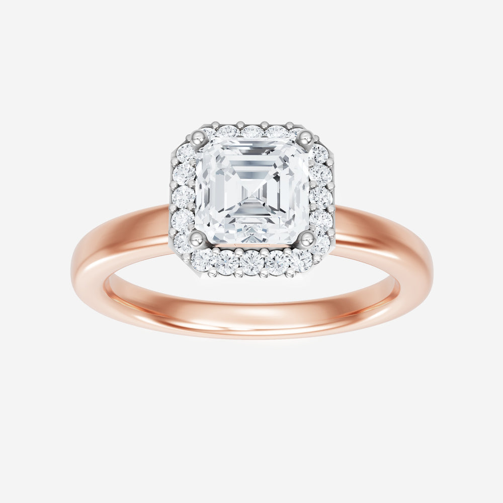You’ve designed a ring that reflects lasting elegance and grace! Crafted from 14k Rose White Dual Tone, this exquisite Asscher lab-grown diamond is the centerpiece of this unique design. This Basic Plain Shank with a Single Halo head showcases the brilliance of the Asscher diamond, creating a timeless look. Ideal for those who seek both beauty and meaning, this ring will stand as a testament to cherished memories.