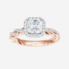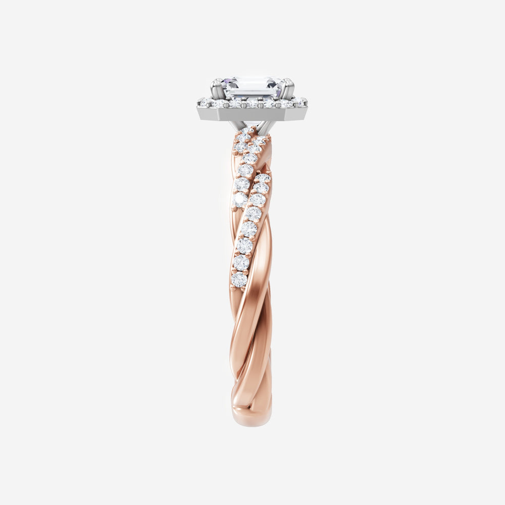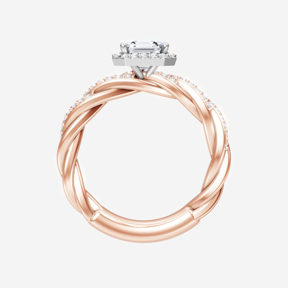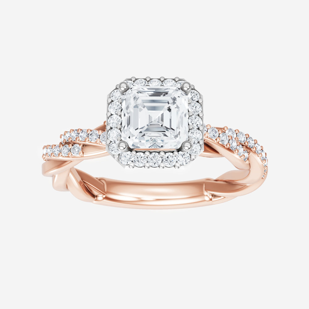 You’ve designed a ring that reflects lasting elegance and grace! Crafted from 14k Rose White Dual Tone, this exquisite Asscher lab-grown diamond is the centerpiece of this unique design. This Rope Diamond Shank with a Single Halo head showcases the brilliance of the Asscher diamond, creating a timeless look. Ideal for those who seek both beauty and meaning, this ring will stand as a testament to cherished memories.