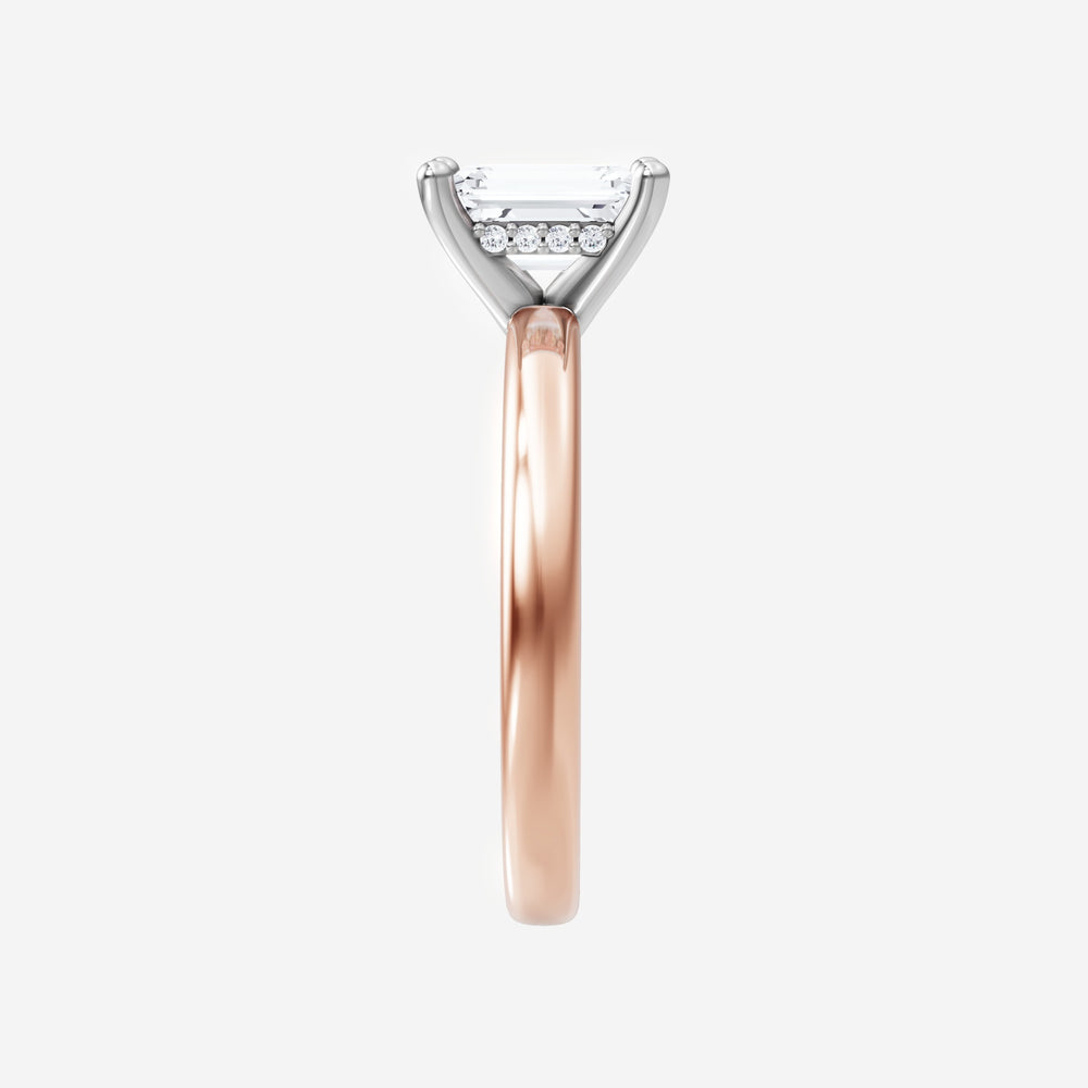 You’ve designed a ring that reflects lasting elegance and grace! Crafted from 14k Rose White Dual Tone, this exquisite Emerald lab-grown diamond is the centerpiece of this unique design. This Basic Plain Shank with a Hidden Halo head showcases the brilliance of the Emerald diamond, creating a timeless look. This ring will become a cherished reminder of life's most treasured moments.