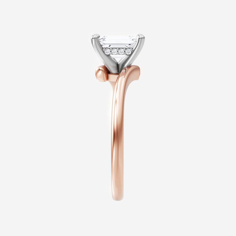 You’ve designed a ring that reflects lasting elegance and grace! Crafted from 14k Rose White Dual Tone, this exquisite Emerald lab-grown diamond is the centerpiece of this unique design. This Bypass Shank with a Hidden Halo head showcases the brilliance of the Emerald diamond, creating a timeless look. This elegant piece is the perfect symbol of love, strength, and timeless beauty.