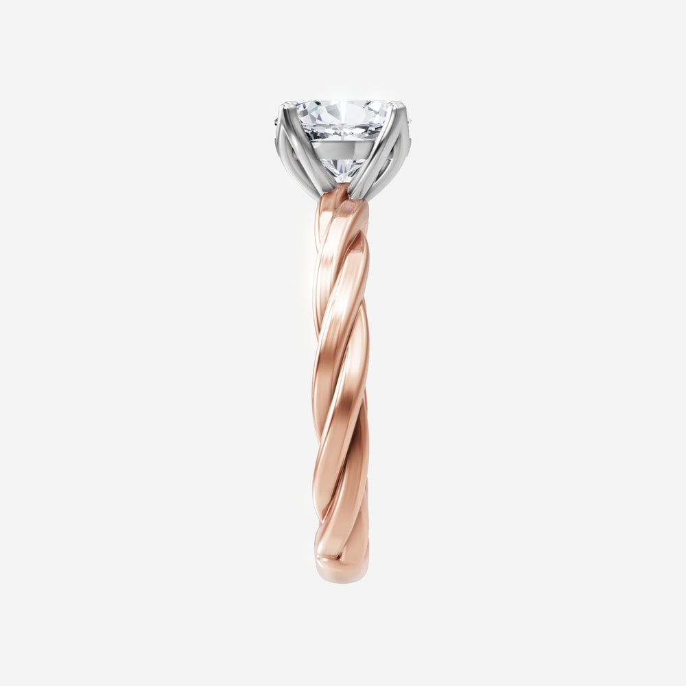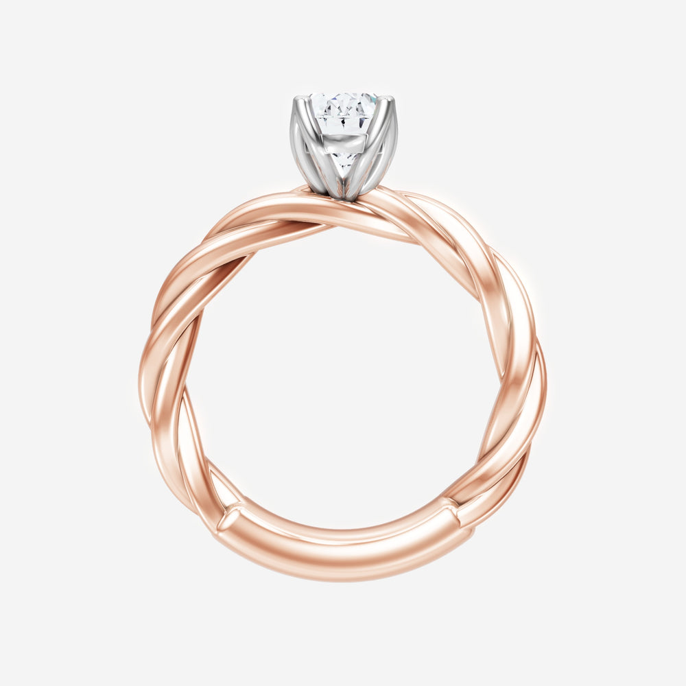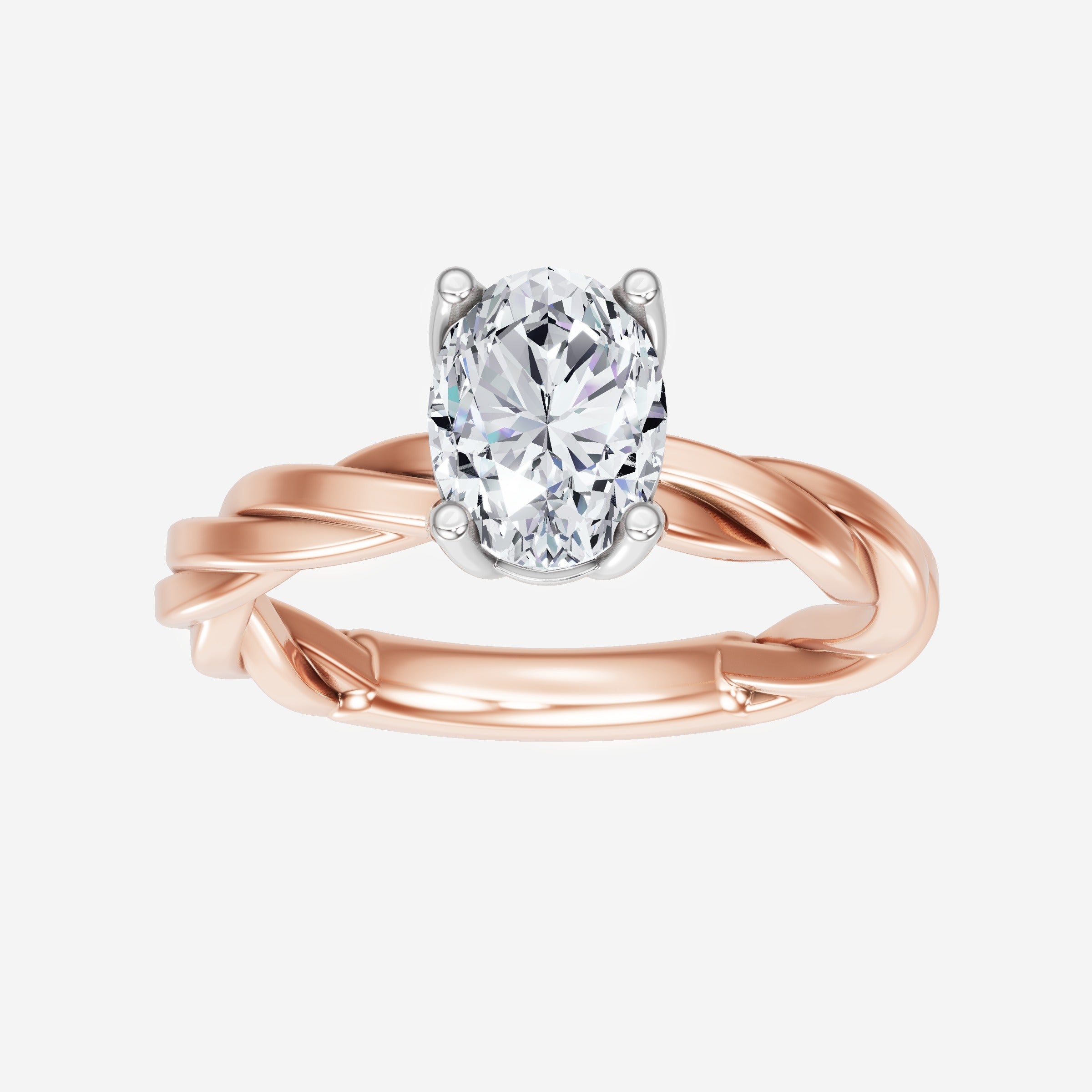 You’ve designed a ring that reflects lasting elegance and grace! Crafted from 14k Rose White Dual Tone, this exquisite Oval lab-grown diamond is the centerpiece of this unique design. This Rope Plain Shank with a 4 Prong Flower Head head showcases the brilliance of the Oval diamond, creating a timeless look. This elegant piece is the perfect symbol of love, strength, and timeless beauty.