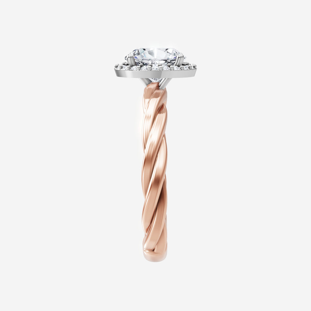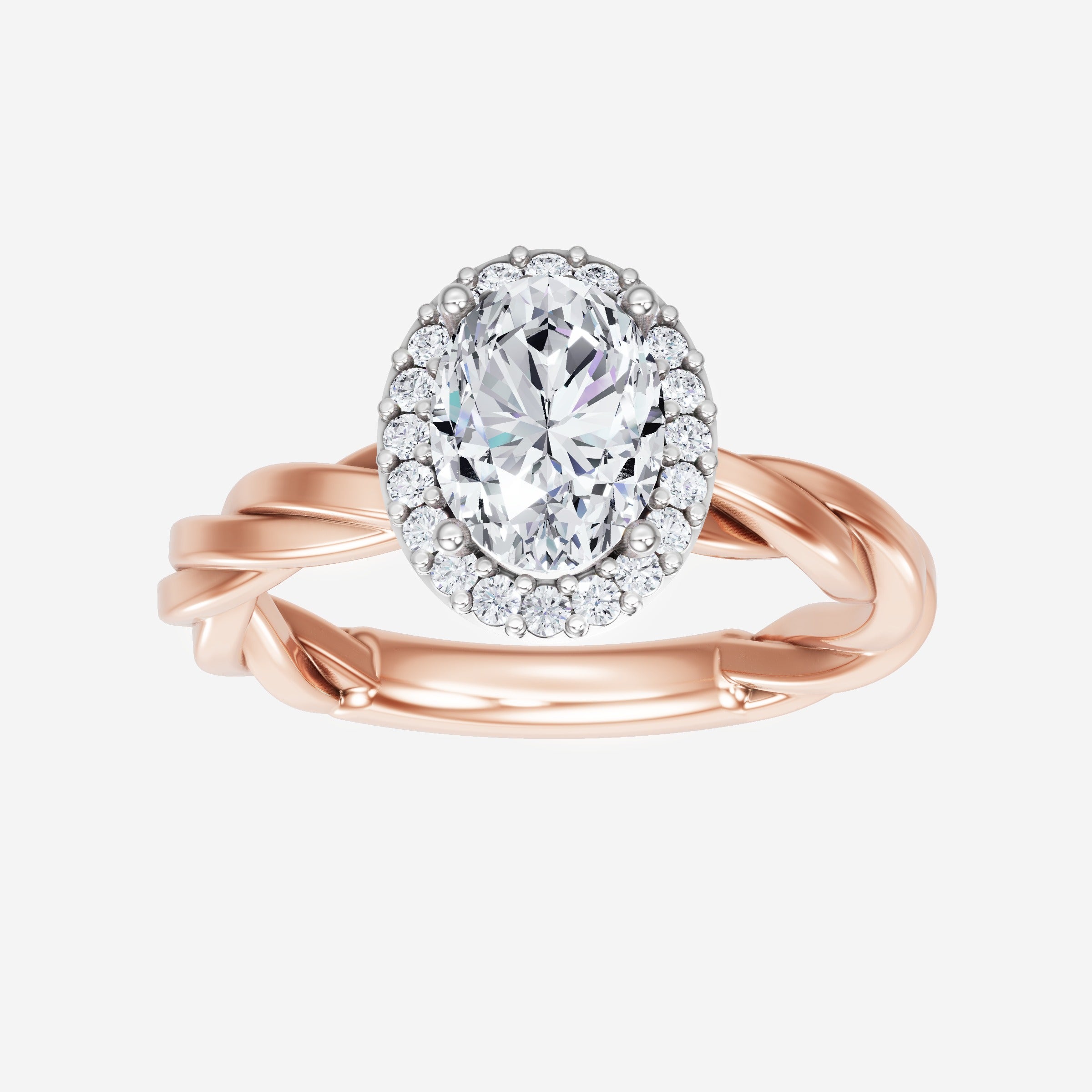 You’ve designed a ring that reflects lasting elegance and grace! Crafted from 14k Rose White Dual Tone, this exquisite Oval lab-grown diamond is the centerpiece of this unique design. This Rope Plain Shank with a Single Halo head showcases the brilliance of the Oval diamond, creating a timeless look. It's a piece of elegance and beauty, perfect for marking life's most beautiful occasions.