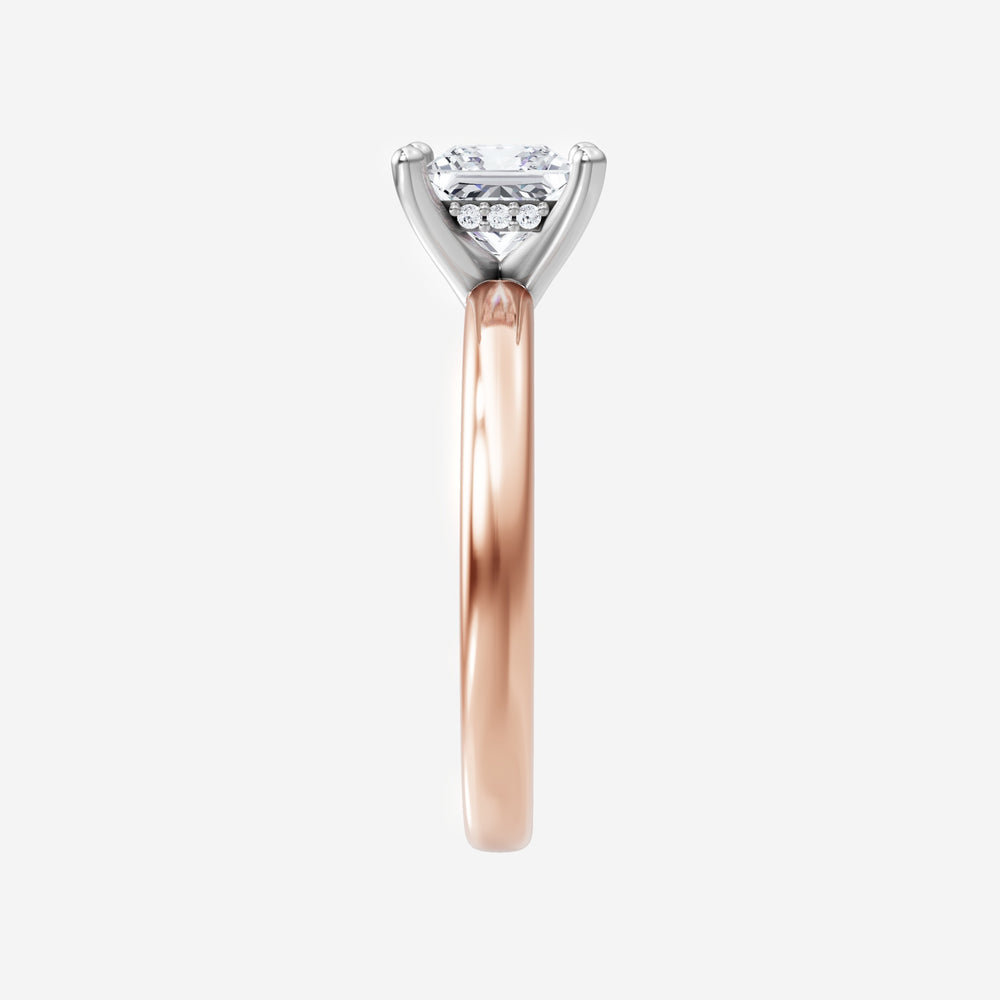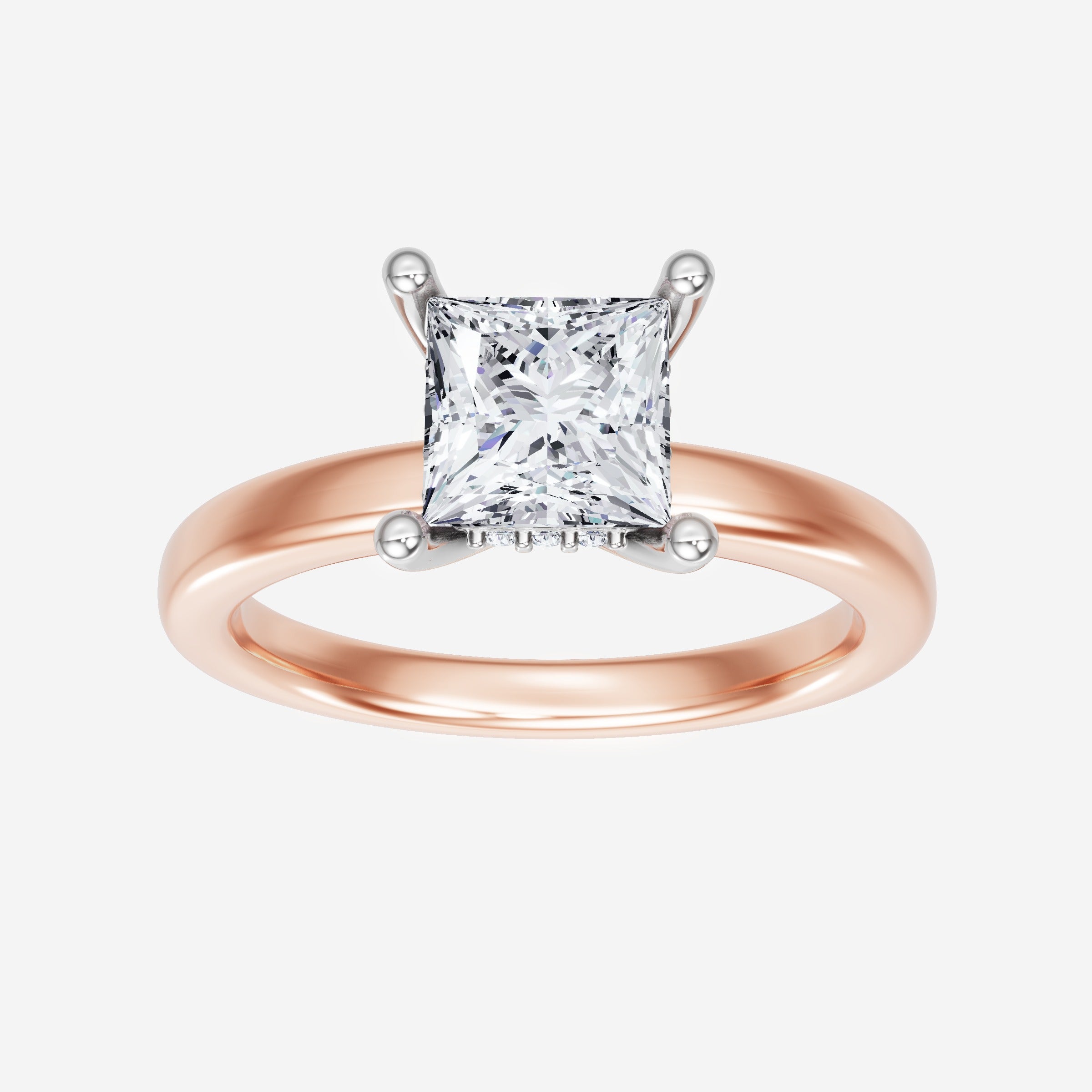You’ve designed a ring that reflects lasting elegance and grace! Crafted from 14k Rose White Dual Tone, this exquisite Princess lab-grown diamond is the centerpiece of this unique design. This Basic Plain Shank with a Hidden Halo head showcases the brilliance of the Princess diamond, creating a timeless look. This stunning ring makes the perfect symbol of everlasting love and devotion.