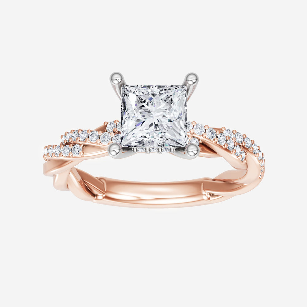 You’ve designed a ring that reflects lasting elegance and grace! Crafted from 14k Rose White Dual Tone, this exquisite Princess lab-grown diamond is the centerpiece of this unique design. This Rope Diamond Shank with a Hidden Halo head showcases the brilliance of the Princess diamond, creating a timeless look. Ideal for those who seek both beauty and meaning, this ring will stand as a testament to cherished memories.