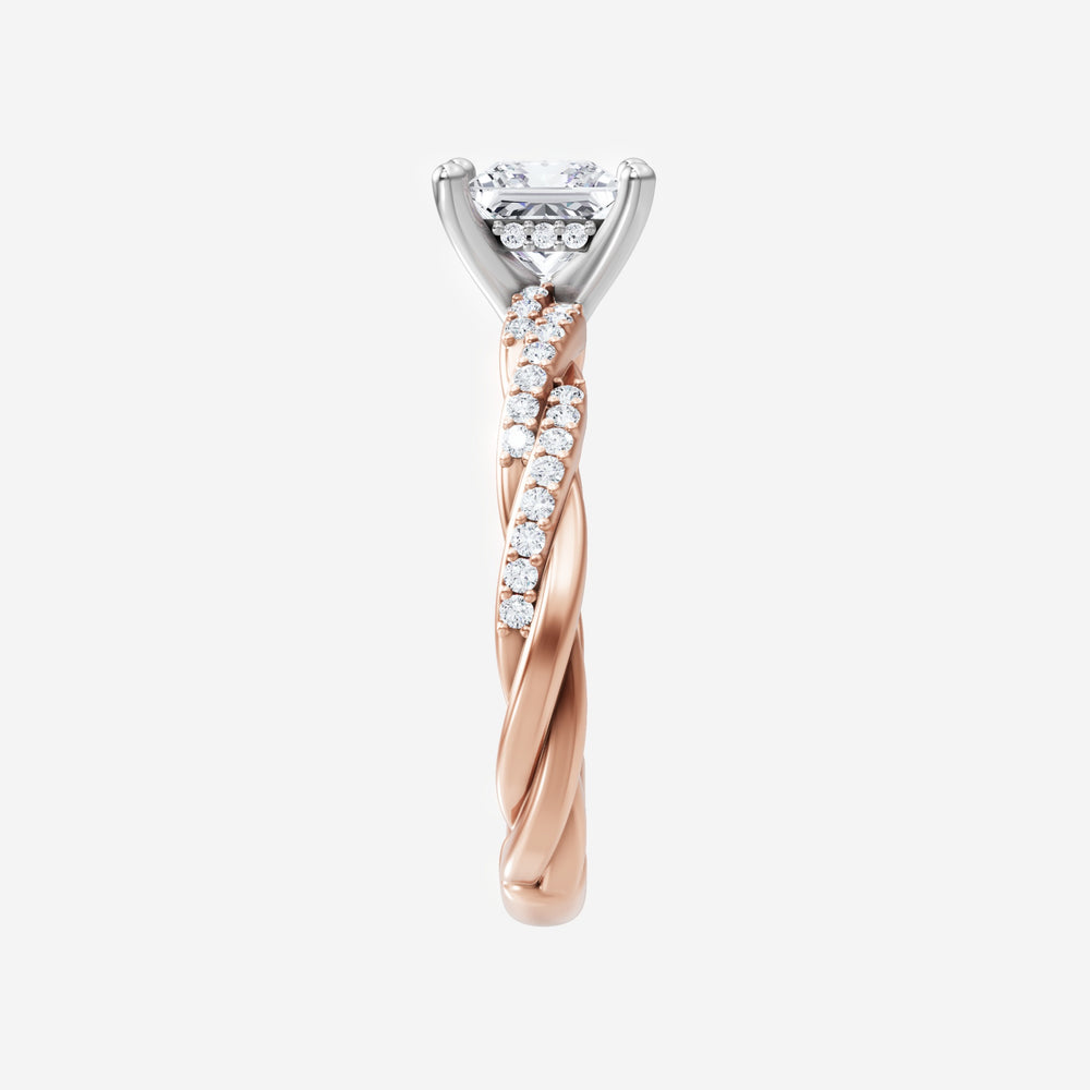 You’ve designed a ring that reflects lasting elegance and grace! Crafted from 14k Rose White Dual Tone, this exquisite Princess lab-grown diamond is the centerpiece of this unique design. This Rope Diamond Shank with a Hidden Halo head showcases the brilliance of the Princess diamond, creating a timeless look. It's a piece of elegance and beauty, perfect for marking life's most beautiful occasions.