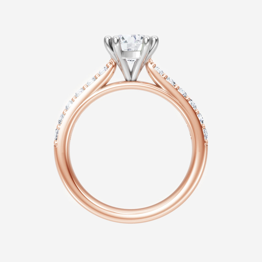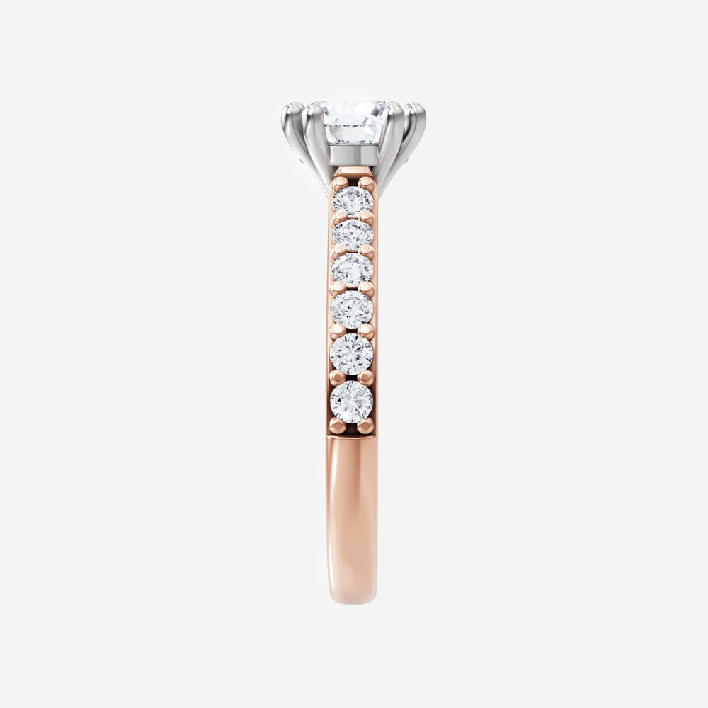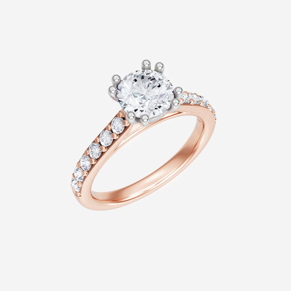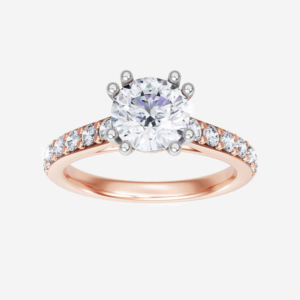 You’ve designed a ring that reflects lasting elegance and grace! Crafted from 14k Rose White Dual Tone, this exquisite Round lab-grown diamond is the centerpiece of this unique design. This Cathedral Diamond Shank with a 4 Prong Split Prong head showcases the brilliance of the Round diamond, creating a timeless look. A perfect choice to celebrate love, commitment, and everything in between.
