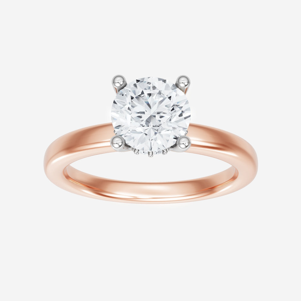 You’ve designed a ring that reflects lasting elegance and grace! Crafted from 14k Rose White Dual Tone, this exquisite Round lab-grown diamond is the centerpiece of this unique design. This Basic Plain Shank with a Hidden Halo head showcases the brilliance of the Round diamond, creating a timeless look. It's a piece of elegance and beauty, perfect for marking life's most beautiful occasions.