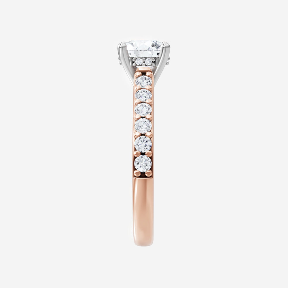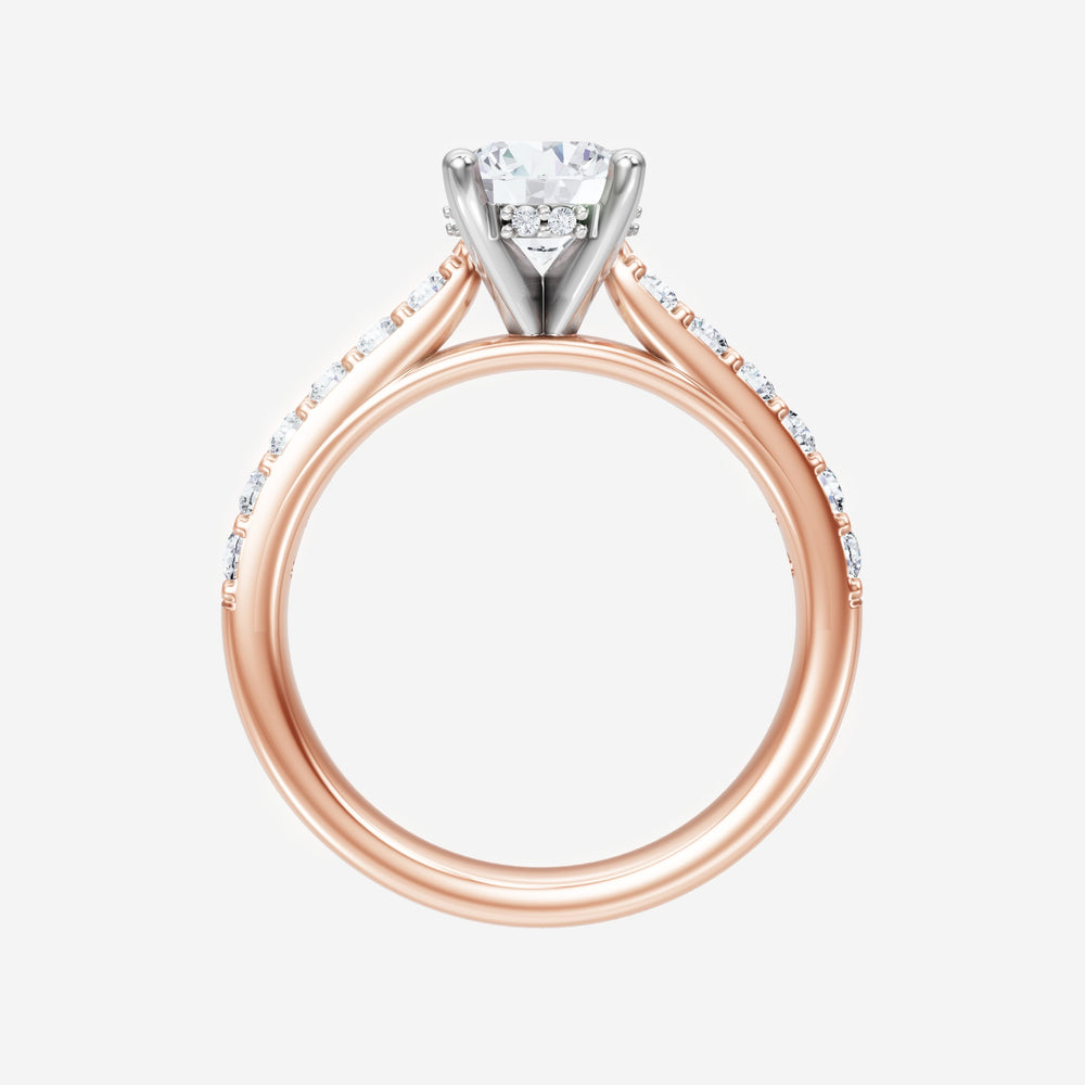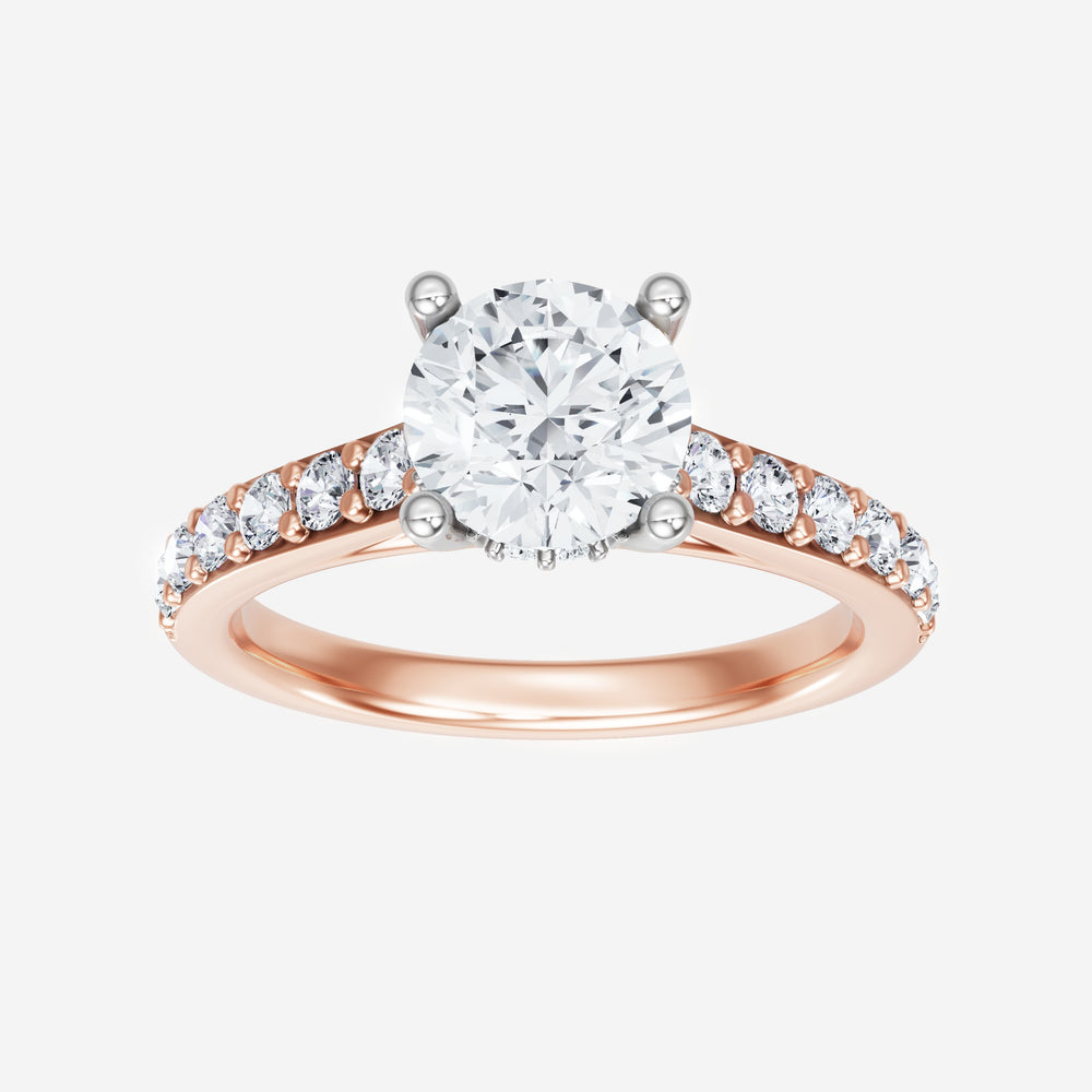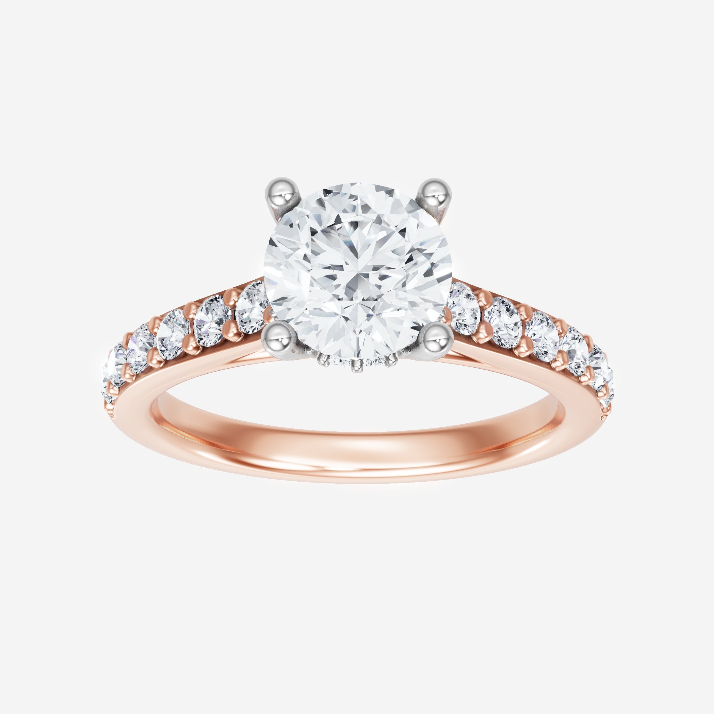 You’ve designed a ring that reflects lasting elegance and grace! Crafted from 14k Rose White Dual Tone, this exquisite Round lab-grown diamond is the centerpiece of this unique design. This Cathedral Diamond Shank with a Hidden Halo head showcases the brilliance of the Round diamond, creating a timeless look. Ideal for those who seek both beauty and meaning, this ring will stand as a testament to cherished memories.