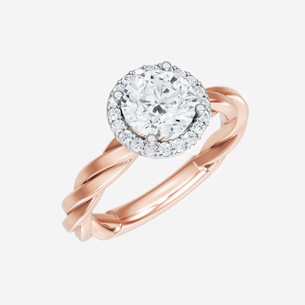 You’ve designed a ring that reflects lasting elegance and grace! Crafted from 14k Rose White Dual Tone, this exquisite Round lab-grown diamond is the centerpiece of this unique design. This Rope Plain Shank with a Single Halo head showcases the brilliance of the Round diamond, creating a timeless look. This stunning ring makes the perfect symbol of everlasting love and devotion.