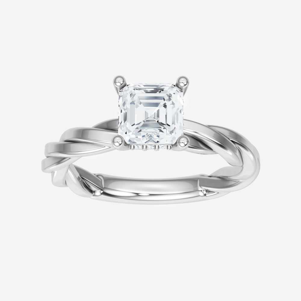 You’ve designed a ring that reflects lasting elegance and grace! Crafted from 14K White Gold, this exquisite Asscher lab-grown diamond is the centerpiece of this unique design. This Rope Plain Shank with a Hidden Halo head showcases the brilliance of the Asscher diamond, creating a timeless look. It's a piece of elegance and beauty, perfect for marking life's most beautiful occasions.