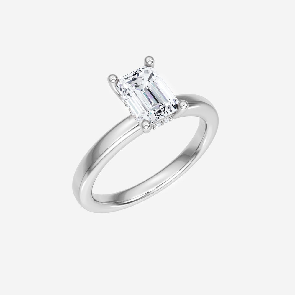 You’ve designed a ring that reflects lasting elegance and grace! Crafted from 14K White Gold, this exquisite Emerald lab-grown diamond is the centerpiece of this unique design. This Basic Plain Shank with a Hidden Halo head showcases the brilliance of the Emerald diamond, creating a timeless look. This elegant piece is the perfect symbol of love, strength, and timeless beauty.