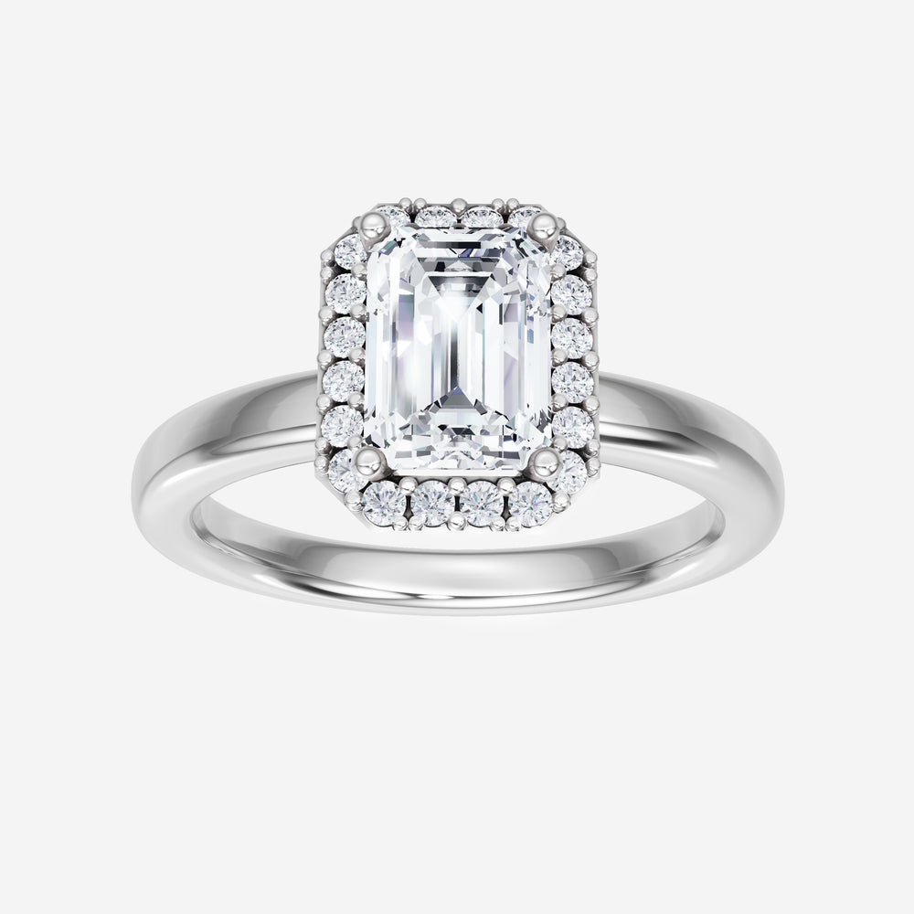 You’ve designed a ring that reflects lasting elegance and grace! Crafted from 14K White Gold, this exquisite Emerald lab-grown diamond is the centerpiece of this unique design. This Basic Plain Shank with a Single Halo head showcases the brilliance of the Emerald diamond, creating a timeless look. It's a piece of elegance and beauty, perfect for marking life's most beautiful occasions.