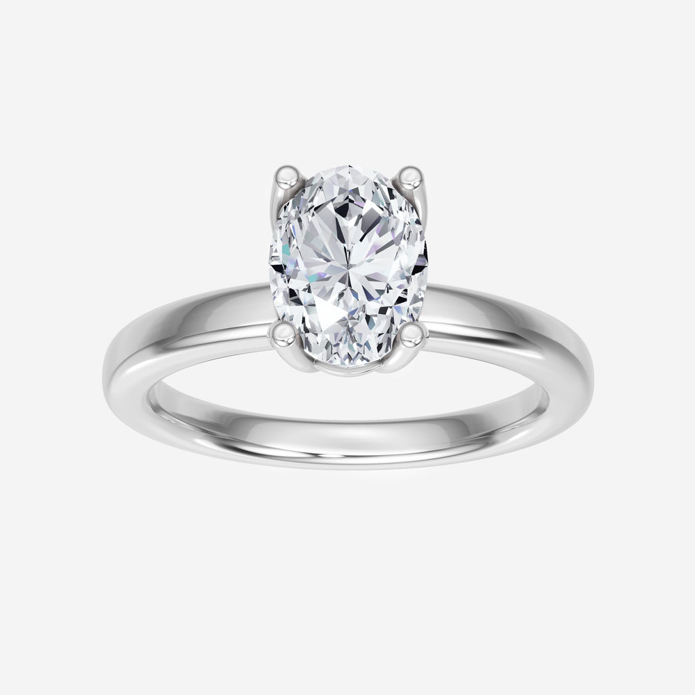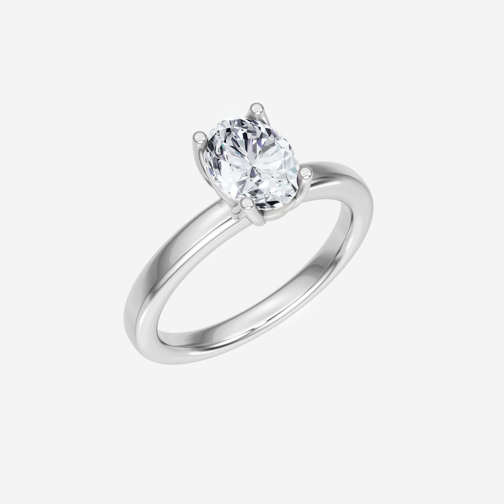 You’ve designed a ring that reflects lasting elegance and grace! Crafted from 14K White Gold, this exquisite Oval lab-grown diamond is the centerpiece of this unique design. This Basic Plain Shank with a 4 Prong Flower Head head showcases the brilliance of the Oval diamond, creating a timeless look. It's a piece of elegance and beauty, perfect for marking life's most beautiful occasions.