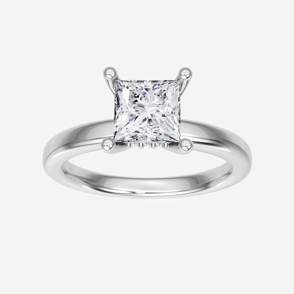 You’ve designed a ring that reflects lasting elegance and grace! Crafted from 14K White Gold, this exquisite Princess lab-grown diamond is the centerpiece of this unique design. This Basic Plain Shank with a Hidden Halo head showcases the brilliance of the Princess diamond, creating a timeless look. This ring will become a cherished reminder of life's most treasured moments.