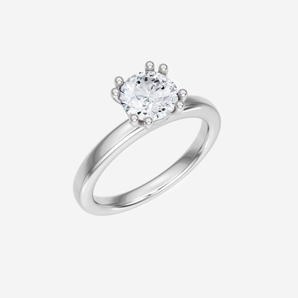You’ve designed a ring that reflects lasting elegance and grace! Crafted from 14K White Gold, this exquisite Round lab-grown diamond is the centerpiece of this unique design. This Basic Plain Shank with a 4 Prong Split Prong head showcases the brilliance of the Round diamond, creating a timeless look. This elegant piece is the perfect symbol of love, strength, and timeless beauty.