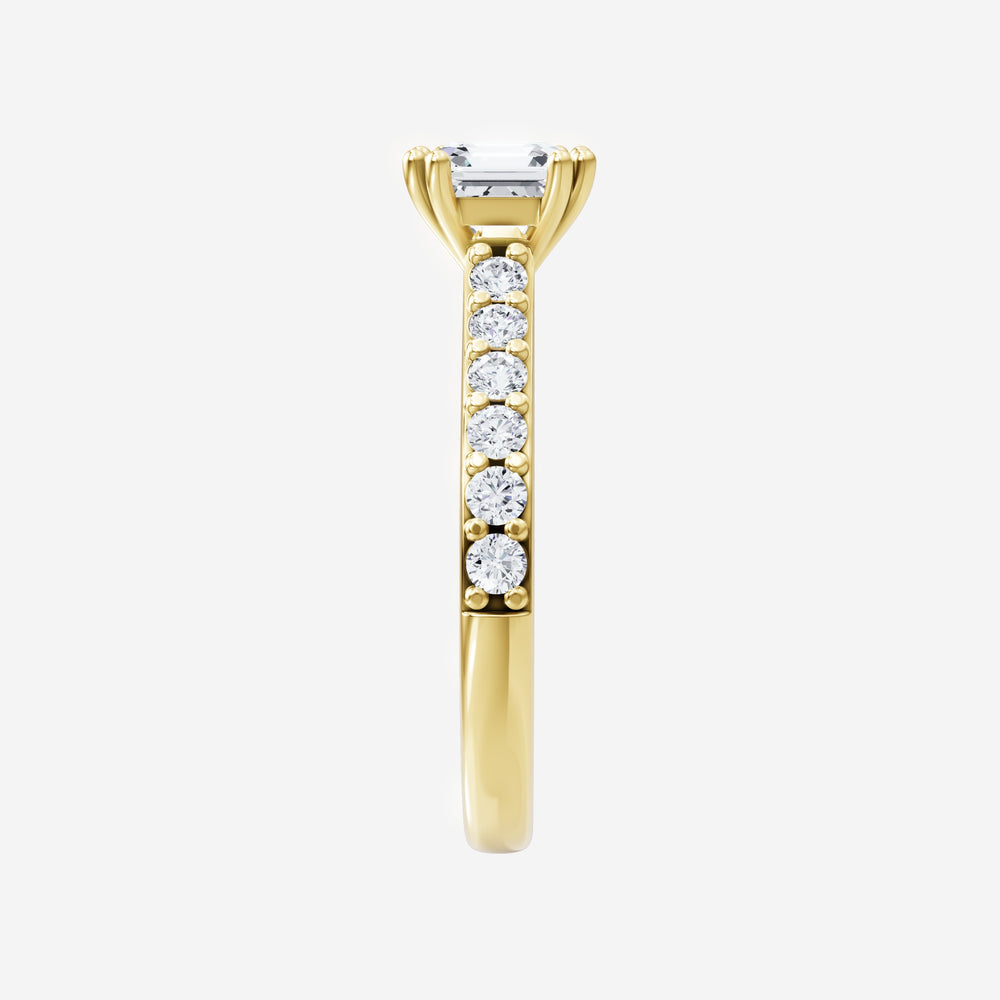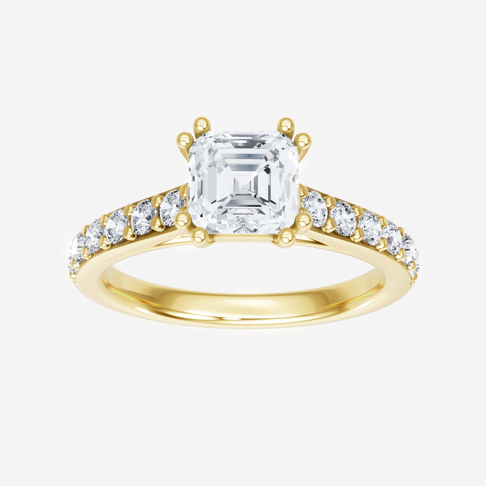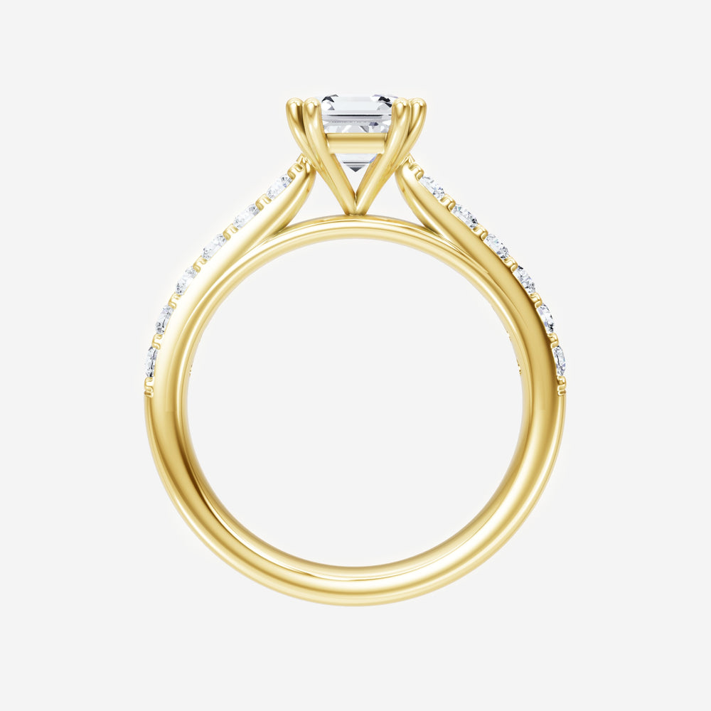 You’ve designed a ring that reflects lasting elegance and grace! Crafted from 14K Yellow Gold, this exquisite Asscher lab-grown diamond is the centerpiece of this unique design. This Cathedral Diamond Shank with a 4 Prong Split Prong head showcases the brilliance of the Asscher diamond, creating a timeless look. This ring will become a cherished reminder of life's most treasured moments.