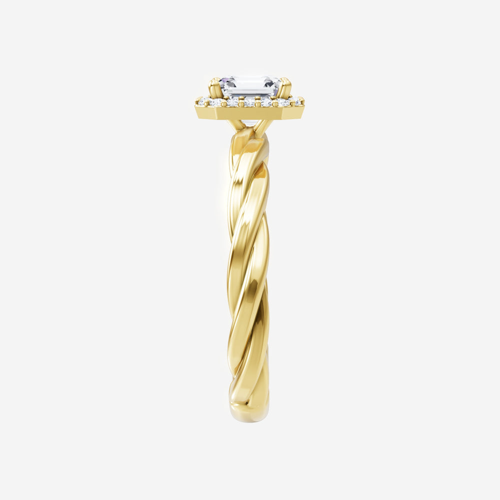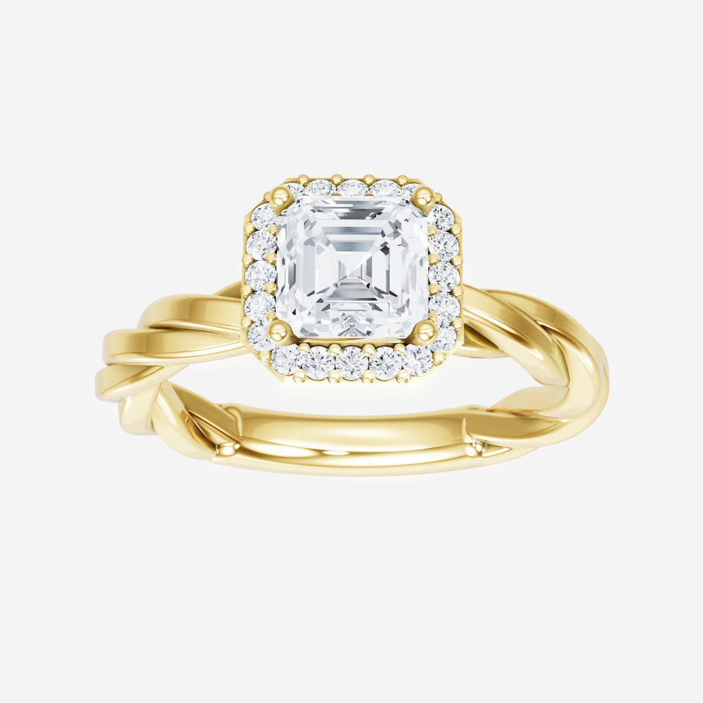 You’ve designed a ring that reflects lasting elegance and grace! Crafted from 14K Yellow Gold, this exquisite Asscher lab-grown diamond is the centerpiece of this unique design. This Rope Plain Shank with a Single Halo head showcases the brilliance of the Asscher diamond, creating a timeless look. This ring will become a cherished reminder of life's most treasured moments.