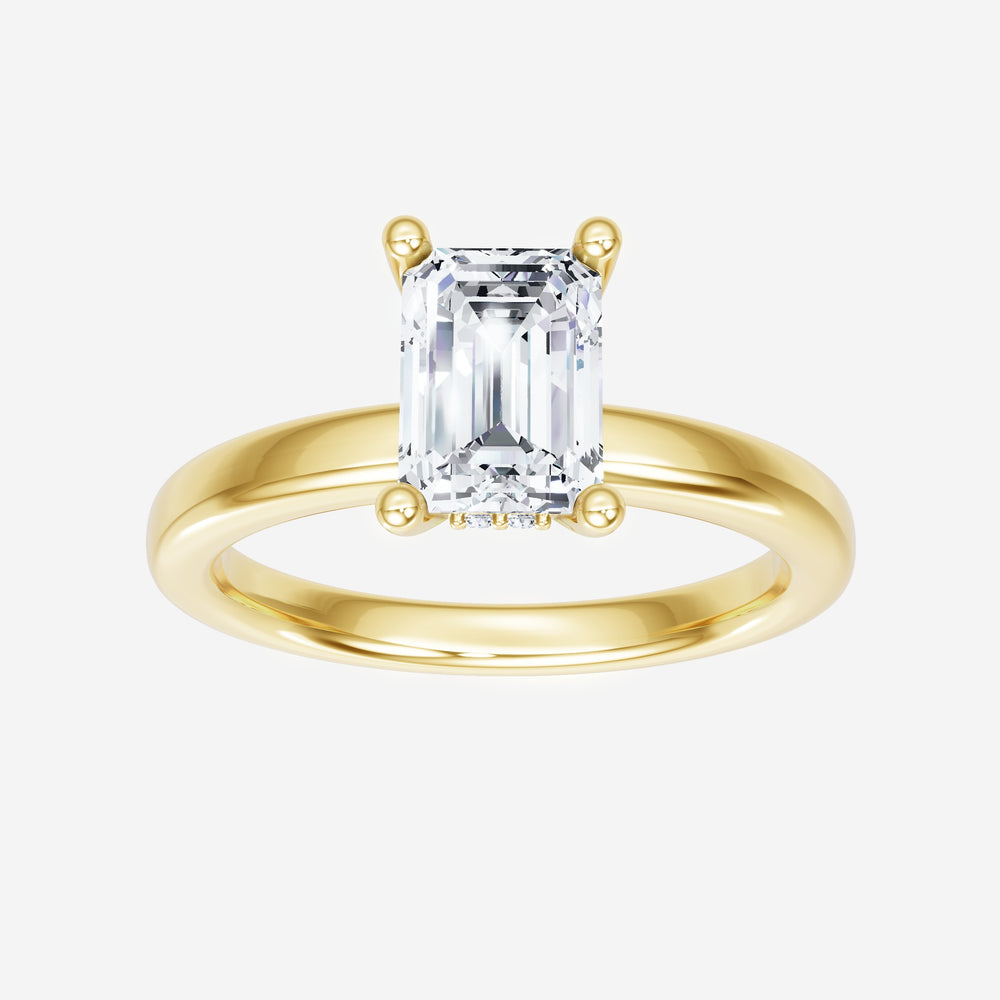 You’ve designed a ring that reflects lasting elegance and grace! Crafted from 14K Yellow Gold, this exquisite Emerald lab-grown diamond is the centerpiece of this unique design. This Basic Plain Shank with a Hidden Halo head showcases the brilliance of the Emerald diamond, creating a timeless look. Ideal for those who seek both beauty and meaning, this ring will stand as a testament to cherished memories.