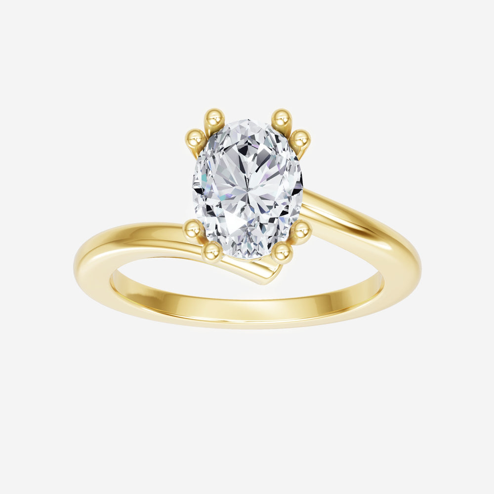 You’ve designed a ring that reflects lasting elegance and grace! Crafted from 14K Yellow Gold, this exquisite Oval lab-grown diamond is the centerpiece of this unique design. This Bypass Shank with a 4 Prong Split Prong head showcases the brilliance of the Oval diamond, creating a timeless look. It's a piece of elegance and beauty, perfect for marking life's most beautiful occasions.