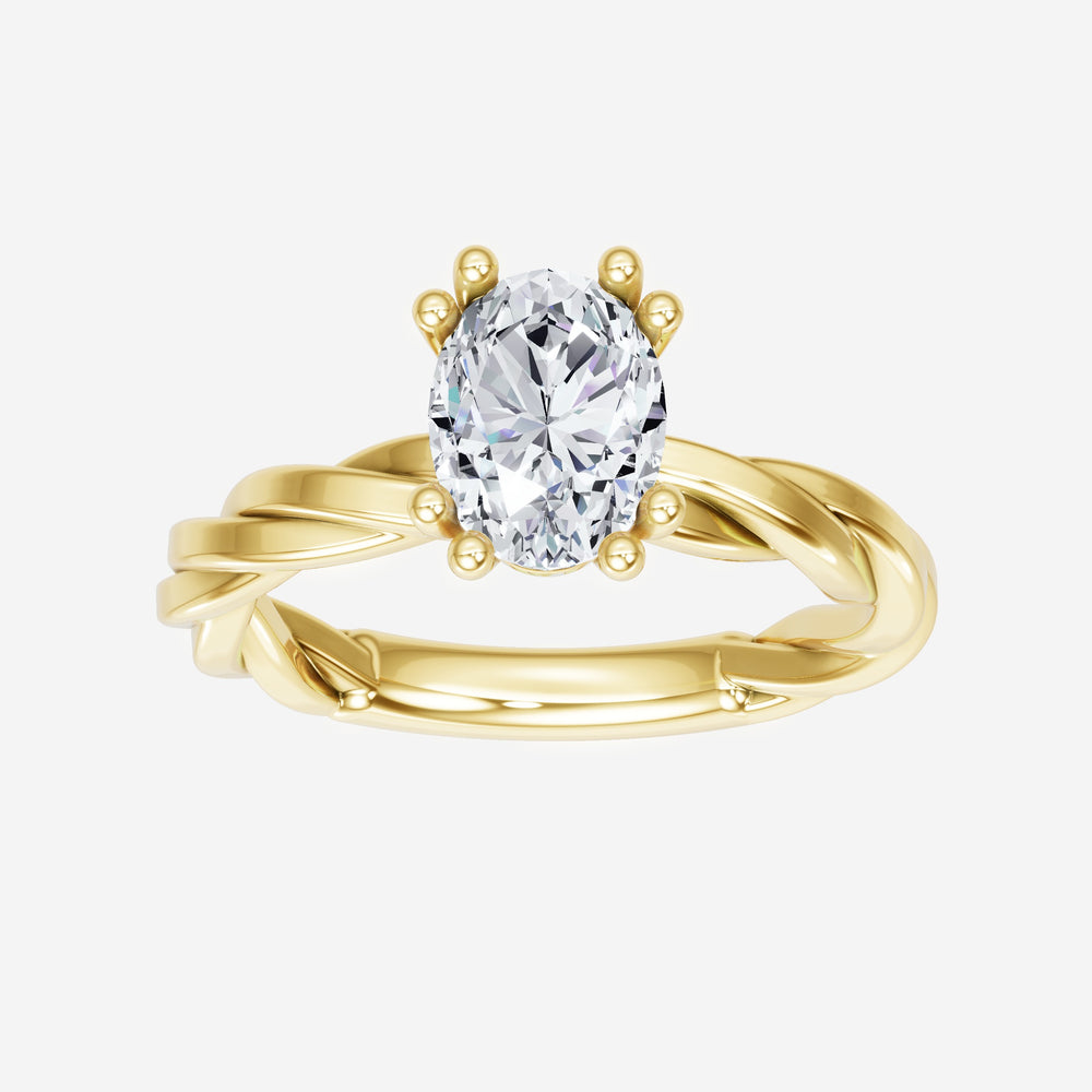 You’ve designed a ring that reflects lasting elegance and grace! Crafted from 14K Yellow Gold, this exquisite Oval lab-grown diamond is the centerpiece of this unique design. This Rope Plain Shank with a 4 Prong Split Prong head showcases the brilliance of the Oval diamond, creating a timeless look. This elegant piece is the perfect symbol of love, strength, and timeless beauty.