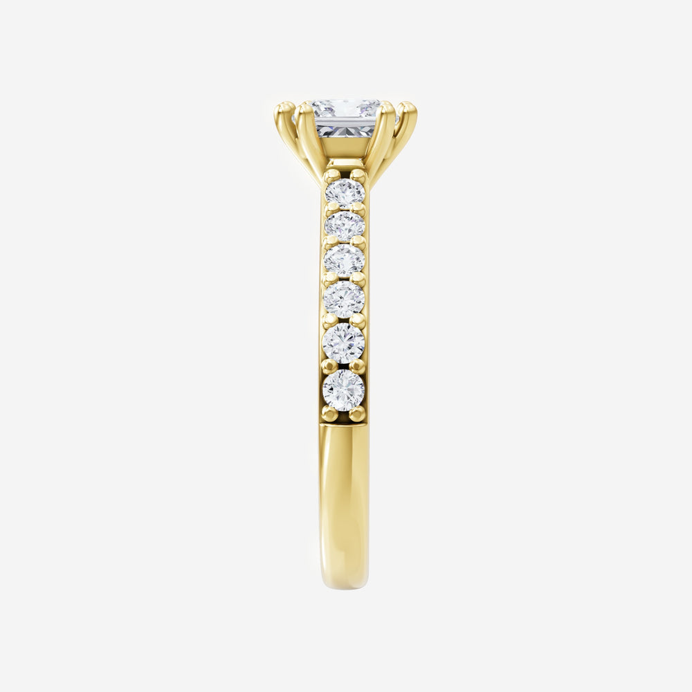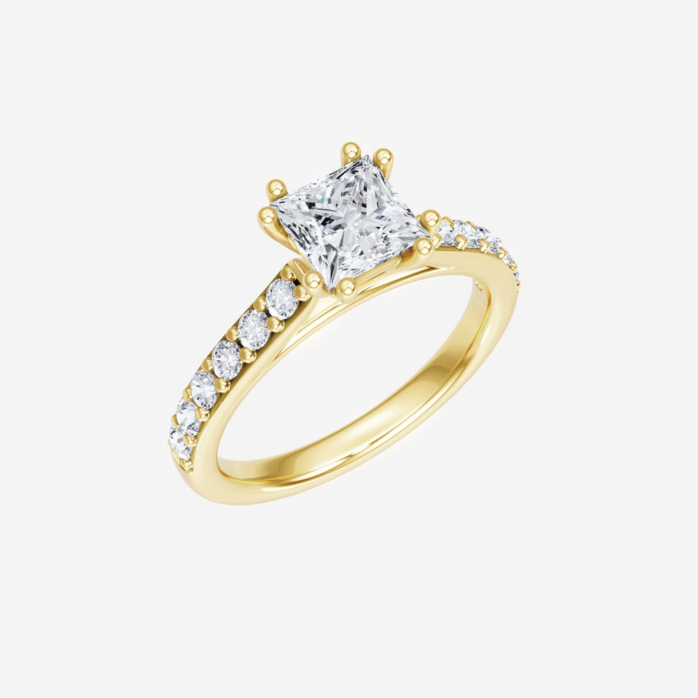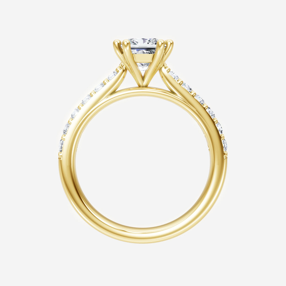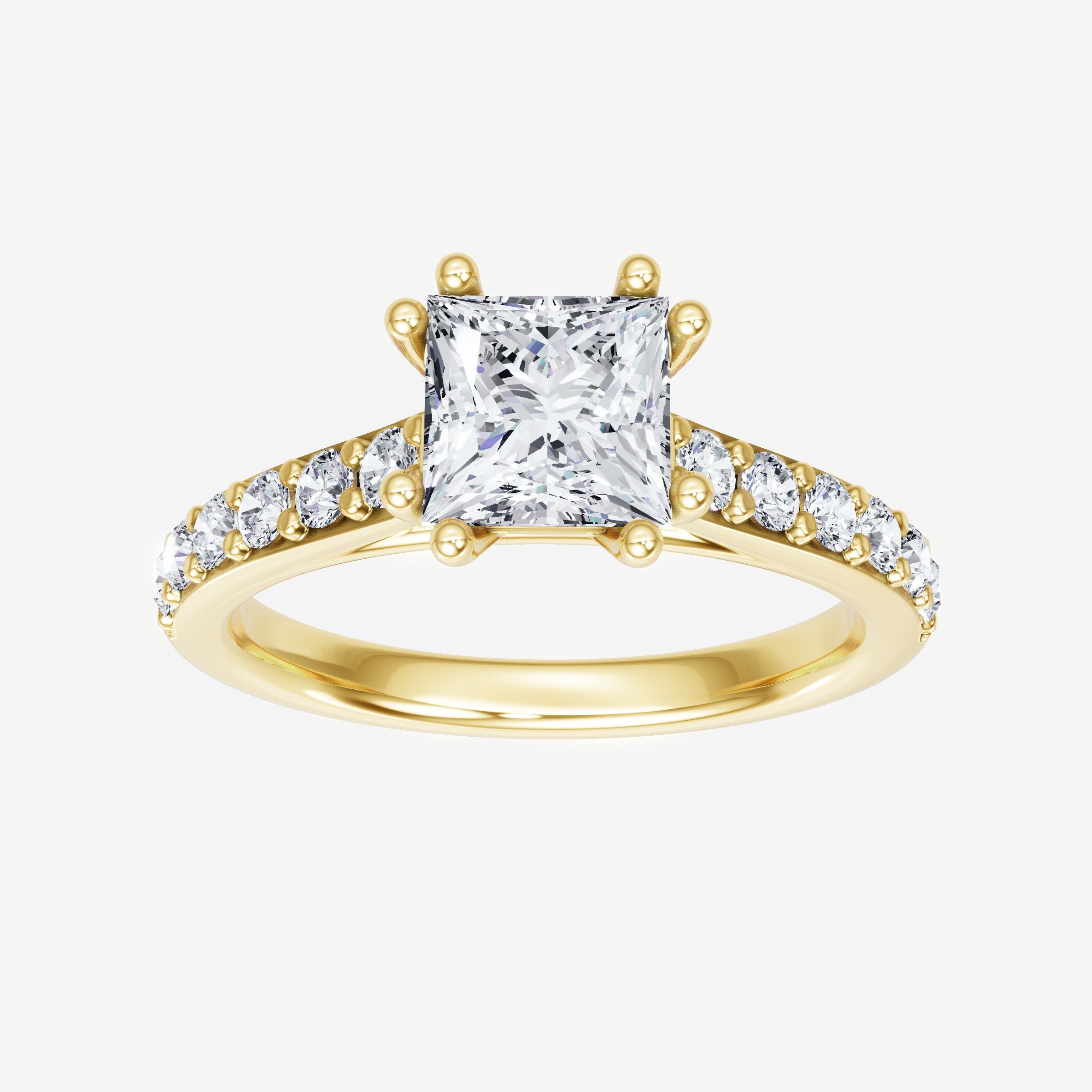 You’ve designed a ring that reflects lasting elegance and grace! Crafted from 14K Yellow Gold, this exquisite Princess lab-grown diamond is the centerpiece of this unique design. This Cathedral Diamond Shank with a 4 Prong Split Prong head showcases the brilliance of the Princess diamond, creating a timeless look. This ring will become a cherished reminder of life's most treasured moments.