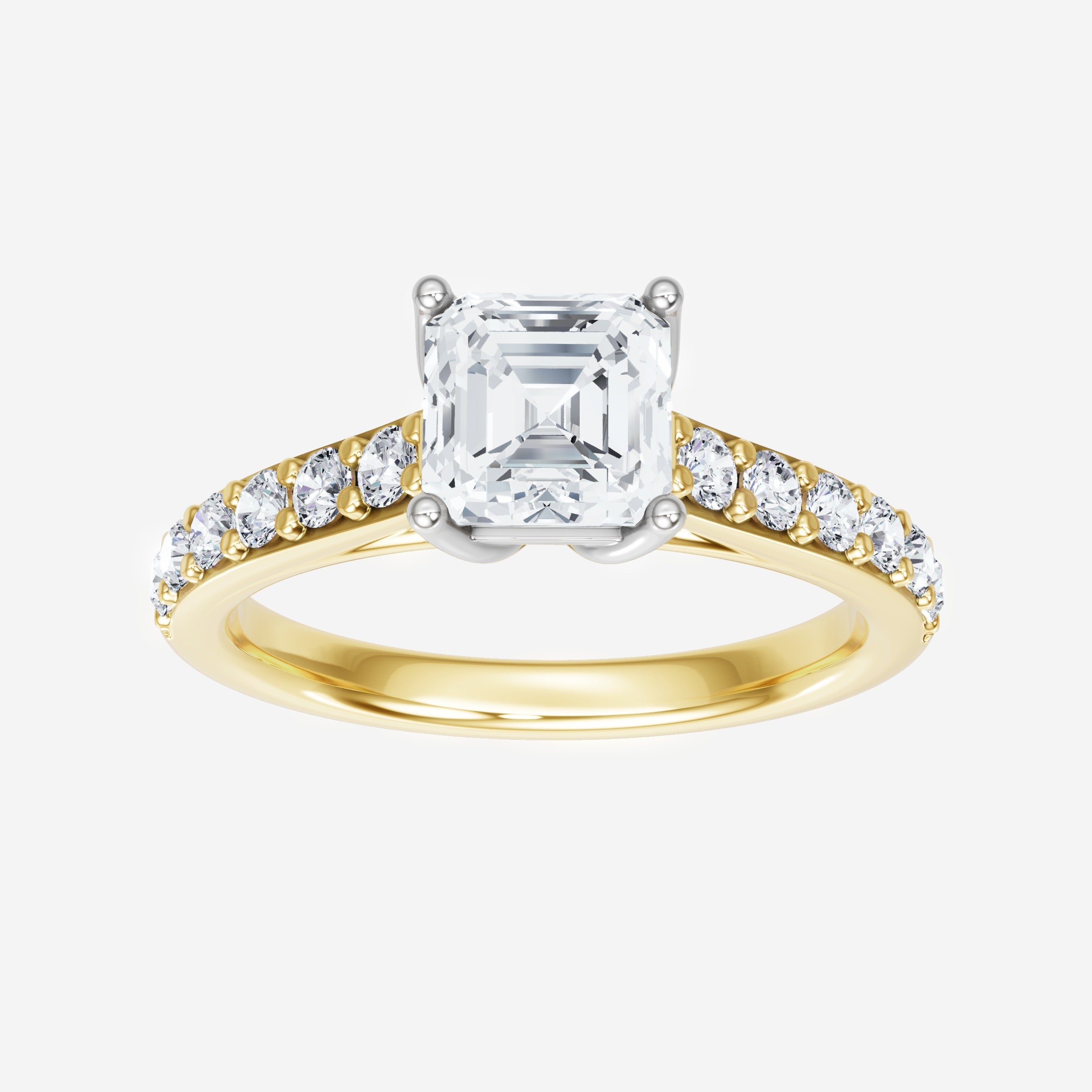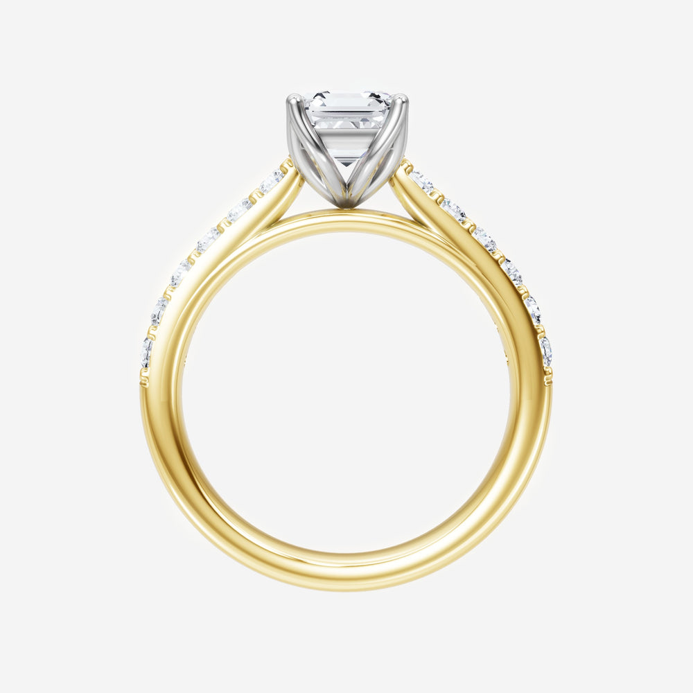 You’ve designed a ring that reflects lasting elegance and grace! Crafted from 14k Yellow White Dual Tone, this exquisite Asscher lab-grown diamond is the centerpiece of this unique design. This Cathedral Diamond Shank with a 4 Prong Flower Head head showcases the brilliance of the Asscher diamond, creating a timeless look. With this ring, celebrate every moment of joy, success, and love.