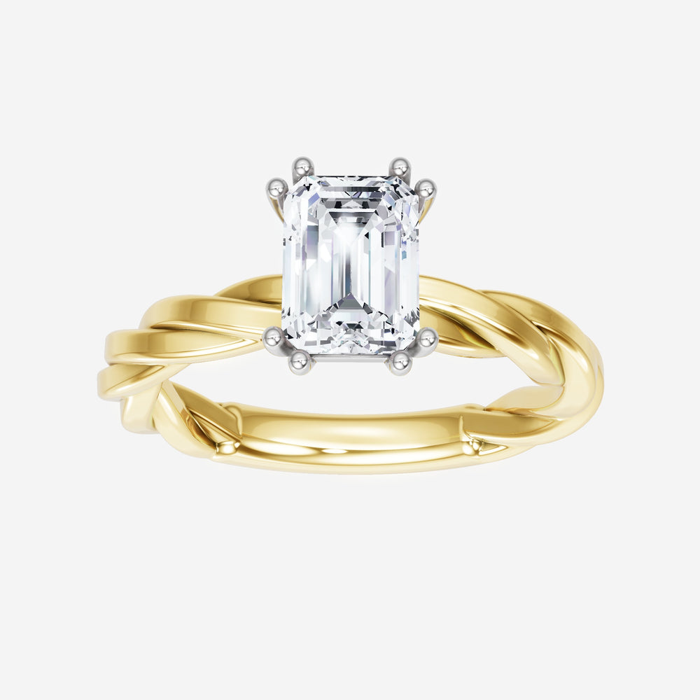 You’ve designed a ring that reflects lasting elegance and grace! Crafted from 14k Yellow White Dual Tone, this exquisite Emerald lab-grown diamond is the centerpiece of this unique design. This Rope Plain Shank with a 4 Prong Split Prong head showcases the brilliance of the Emerald diamond, creating a timeless look. It's a piece of elegance and beauty, perfect for marking life's most beautiful occasions.