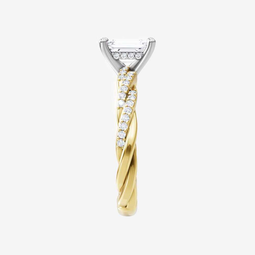 You’ve designed a ring that reflects lasting elegance and grace! Crafted from 14k Yellow White Dual Tone, this exquisite Emerald lab-grown diamond is the centerpiece of this unique design. This Rope Diamond Shank with a Hidden Halo head showcases the brilliance of the Emerald diamond, creating a timeless look. This ring will become a cherished reminder of life's most treasured moments.