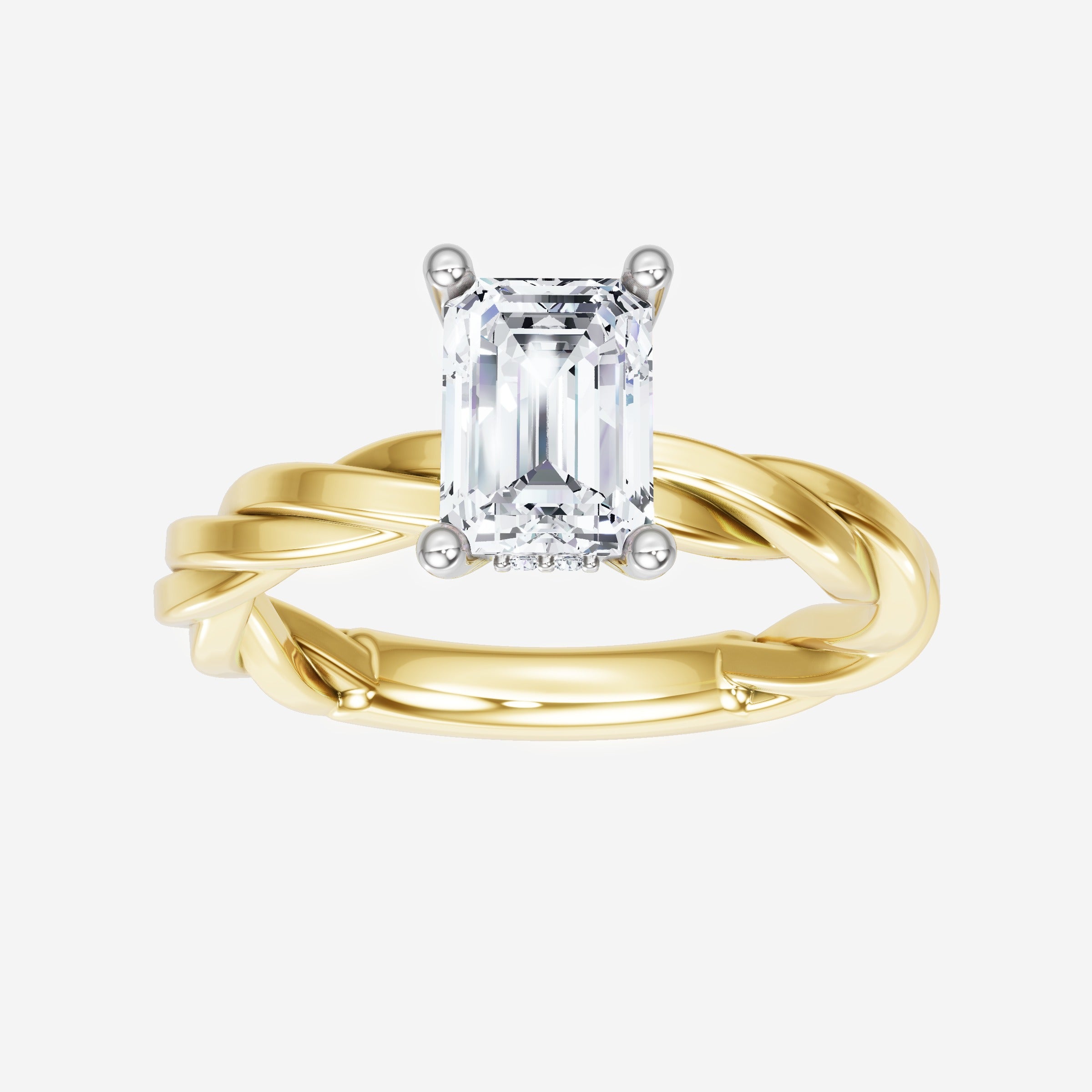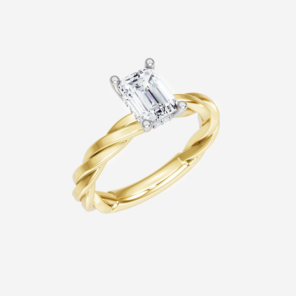 You’ve designed a ring that reflects lasting elegance and grace! Crafted from 14k Yellow White Dual Tone, this exquisite Emerald lab-grown diamond is the centerpiece of this unique design. This Rope Plain Shank with a Hidden Halo head showcases the brilliance of the Emerald diamond, creating a timeless look. This stunning ring makes the perfect symbol of everlasting love and devotion.