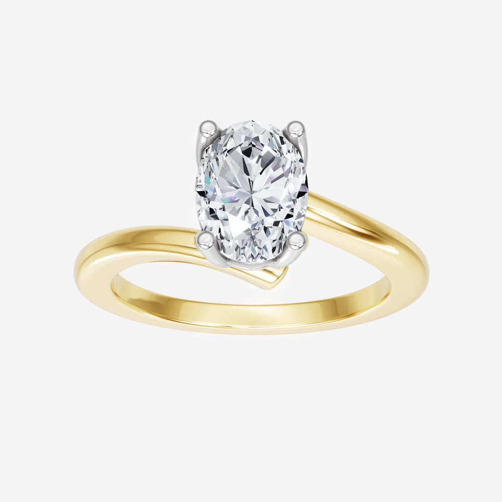 You’ve designed a ring that reflects lasting elegance and grace! Crafted from 14k Yellow White Dual Tone, this exquisite Oval lab-grown diamond is the centerpiece of this unique design. This Bypass Shank with a 4 Prong Flower Head head showcases the brilliance of the Oval diamond, creating a timeless look. It's a piece of elegance and beauty, perfect for marking life's most beautiful occasions.