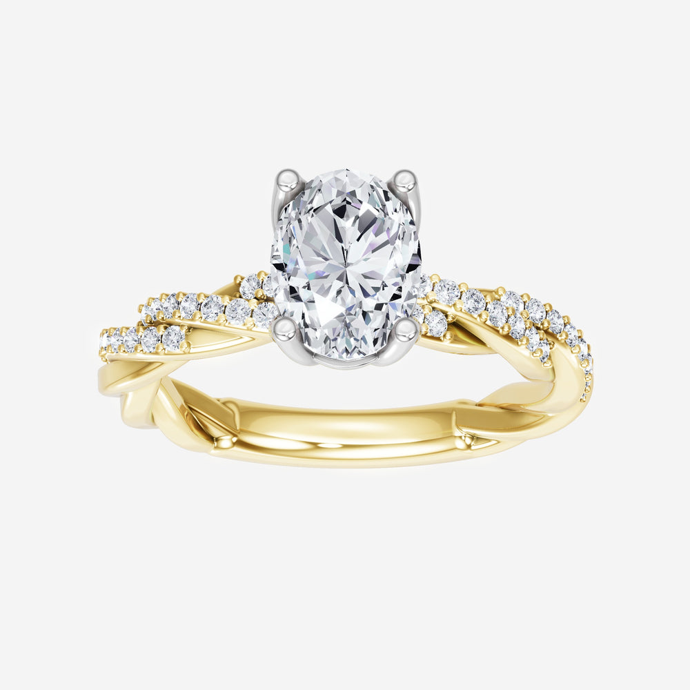 You’ve designed a ring that reflects lasting elegance and grace! Crafted from 14k Yellow White Dual Tone, this exquisite Oval lab-grown diamond is the centerpiece of this unique design. This Rope Diamond Shank with a 4 Prong Flower Head head showcases the brilliance of the Oval diamond, creating a timeless look. It's a piece of elegance and beauty, perfect for marking life's most beautiful occasions.