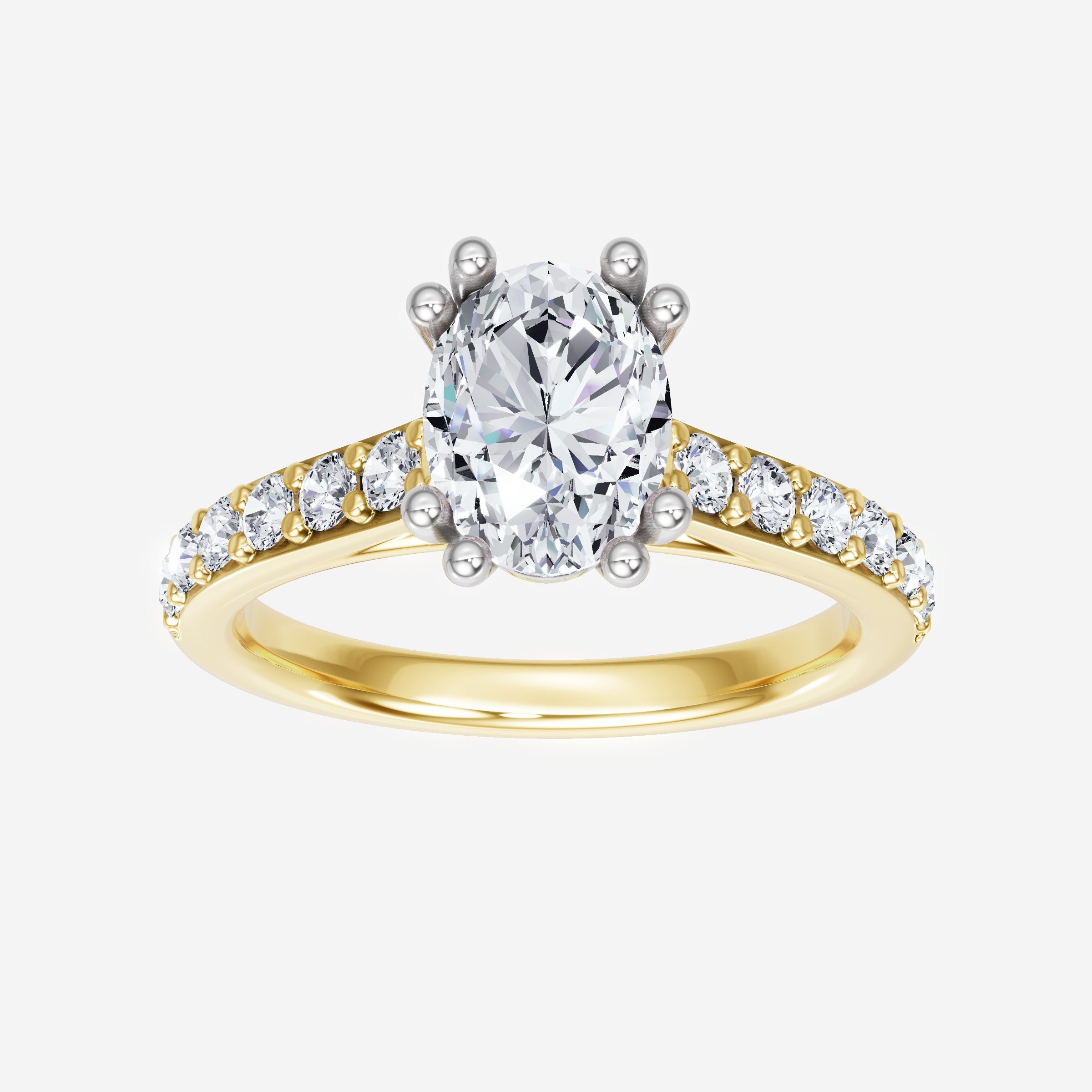 You’ve designed a ring that reflects lasting elegance and grace! Crafted from 14k Yellow White Dual Tone, this exquisite Oval lab-grown diamond is the centerpiece of this unique design. This Cathedral Diamond Shank with a 4 Prong Split Prong head showcases the brilliance of the Oval diamond, creating a timeless look. Whether as a gift or a personal treasure, this ring will forever symbolize the most meaningful moments in life.
