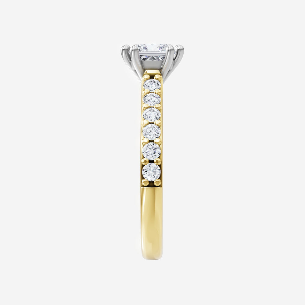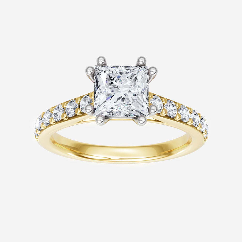 You’ve designed a ring that reflects lasting elegance and grace! Crafted from 14k Yellow White Dual Tone, this exquisite Princess lab-grown diamond is the centerpiece of this unique design. This Cathedral Diamond Shank with a 4 Prong Split Prong head showcases the brilliance of the Princess diamond, creating a timeless look. With this ring, celebrate every moment of joy, success, and love.