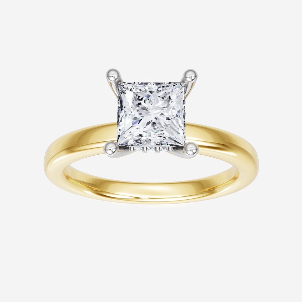 You’ve designed a ring that reflects lasting elegance and grace! Crafted from 14k Yellow White Dual Tone, this exquisite Princess lab-grown diamond is the centerpiece of this unique design. This Basic Plain Shank with a Hidden Halo head showcases the brilliance of the Princess diamond, creating a timeless look. This ring will become a cherished reminder of life's most treasured moments.