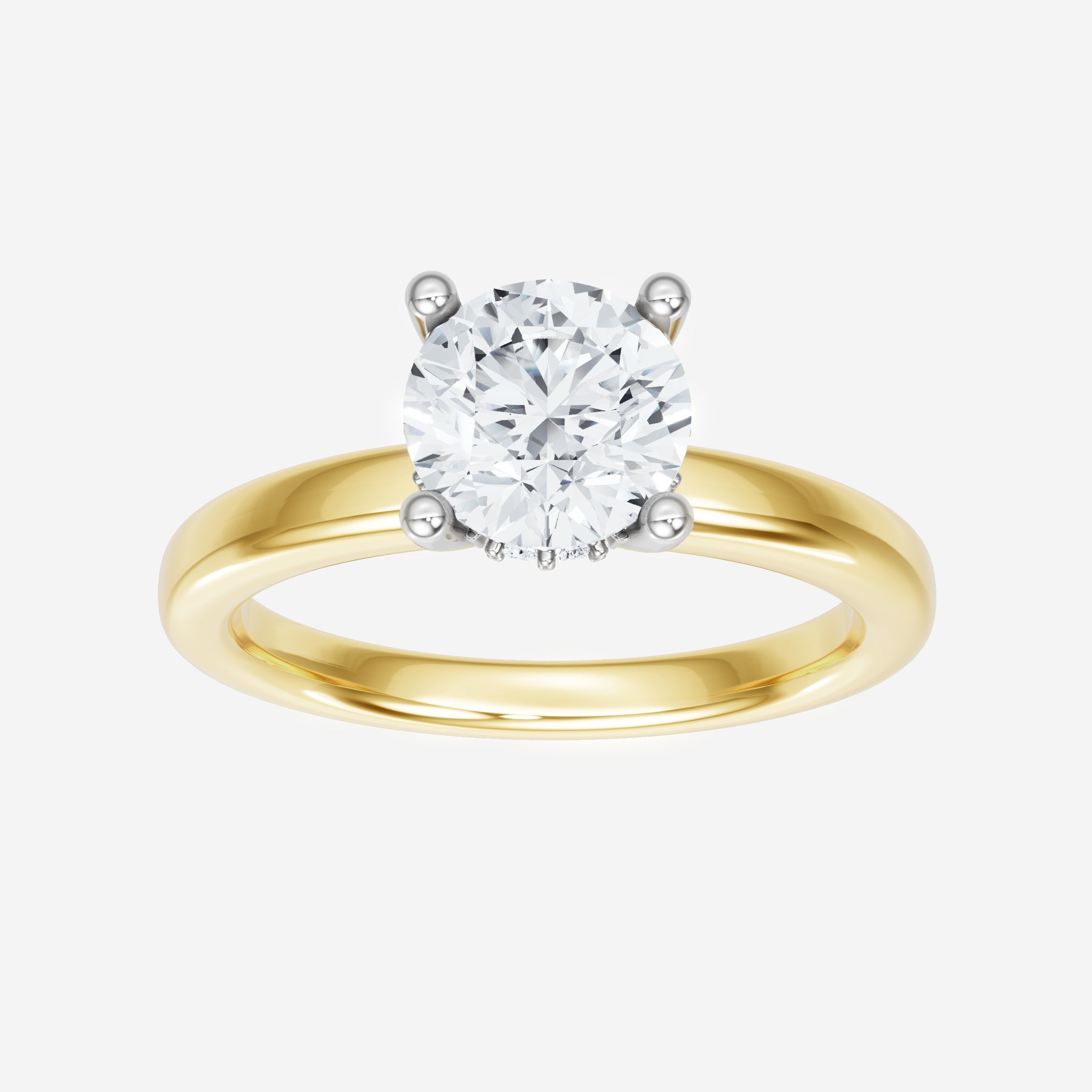 You’ve designed a ring that reflects lasting elegance and grace! Crafted from 14k Yellow White Dual Tone, this exquisite Round lab-grown diamond is the centerpiece of this unique design. This Basic Plain Shank with a Hidden Halo head showcases the brilliance of the Round diamond, creating a timeless look. It's a piece of elegance and beauty, perfect for marking life's most beautiful occasions.