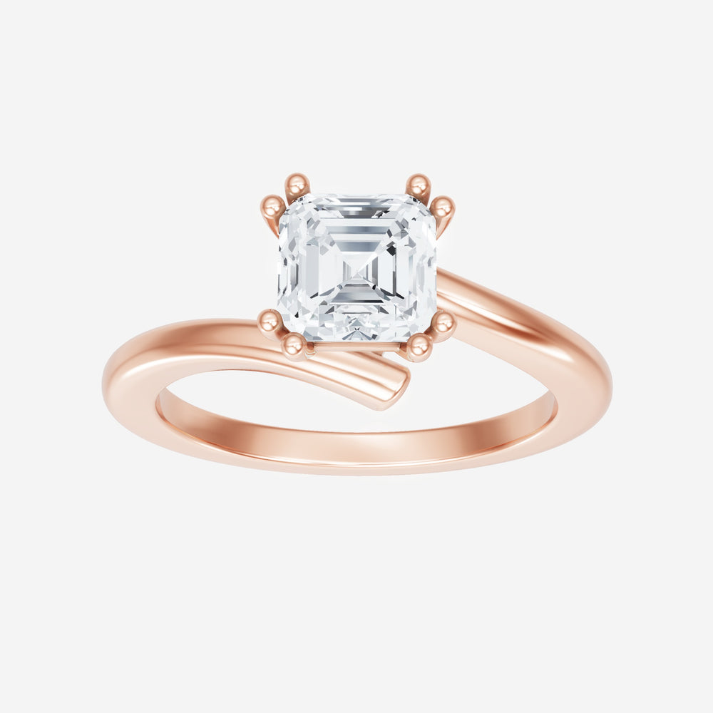 You’ve designed a ring that reflects lasting elegance and grace! Crafted from 18K Rose Gold, this exquisite Asscher lab-grown diamond is the centerpiece of this unique design. This Bypass Shank with a 4 Prong Split Prong head showcases the brilliance of the Asscher diamond, creating a timeless look. This stunning ring makes the perfect symbol of everlasting love and devotion.