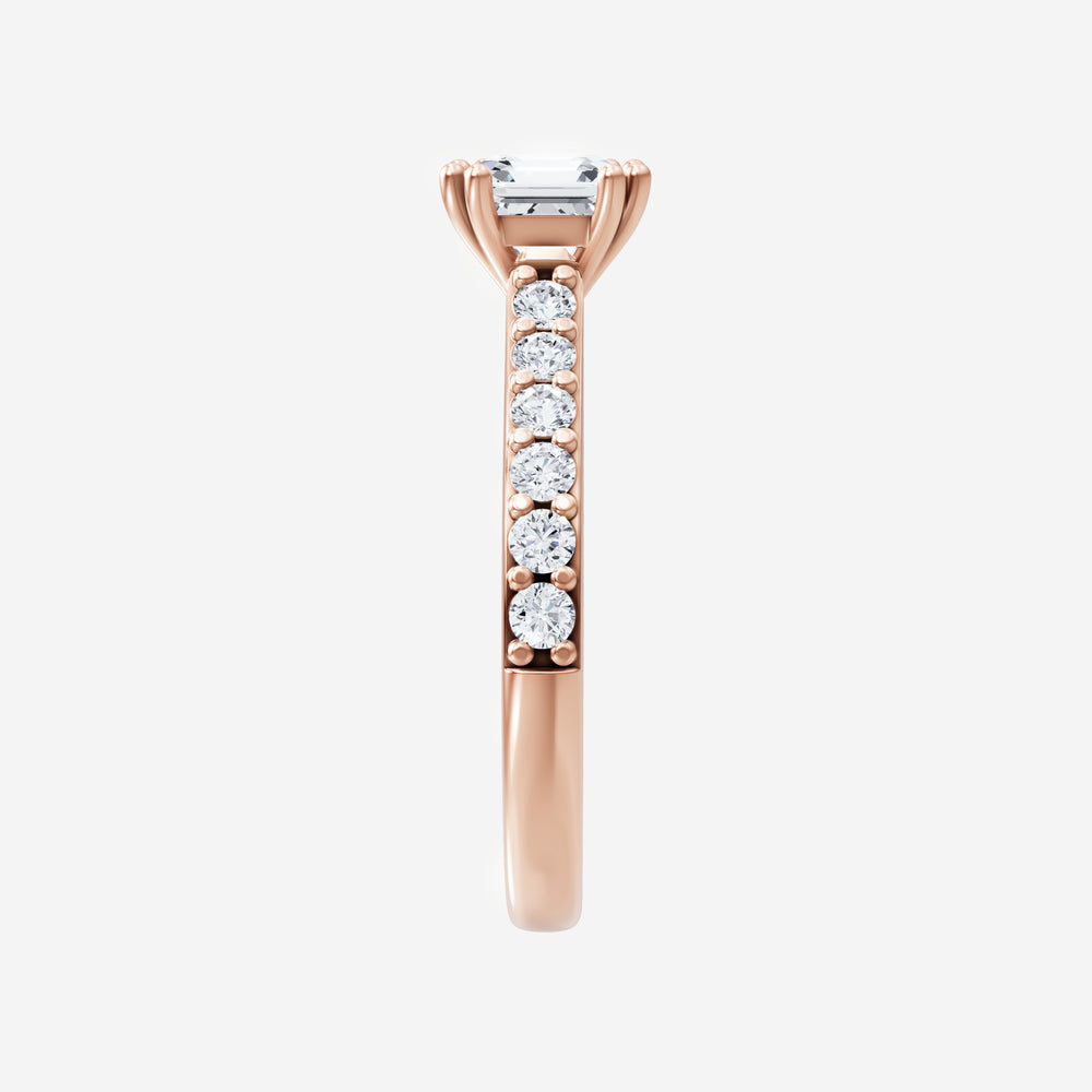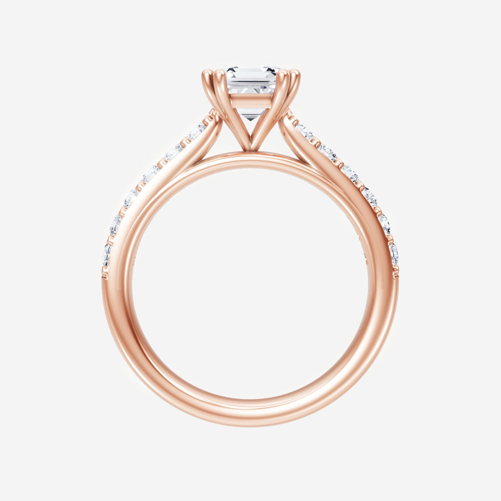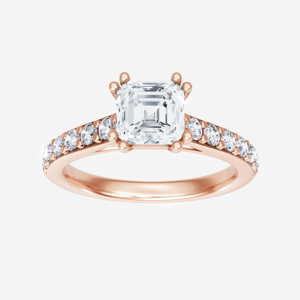 You’ve designed a ring that reflects lasting elegance and grace! Crafted from 18K Rose Gold, this exquisite Asscher lab-grown diamond is the centerpiece of this unique design. This Cathedral Diamond Shank with a 4 Prong Split Prong head showcases the brilliance of the Asscher diamond, creating a timeless look. It's a piece of elegance and beauty, perfect for marking life's most beautiful occasions.