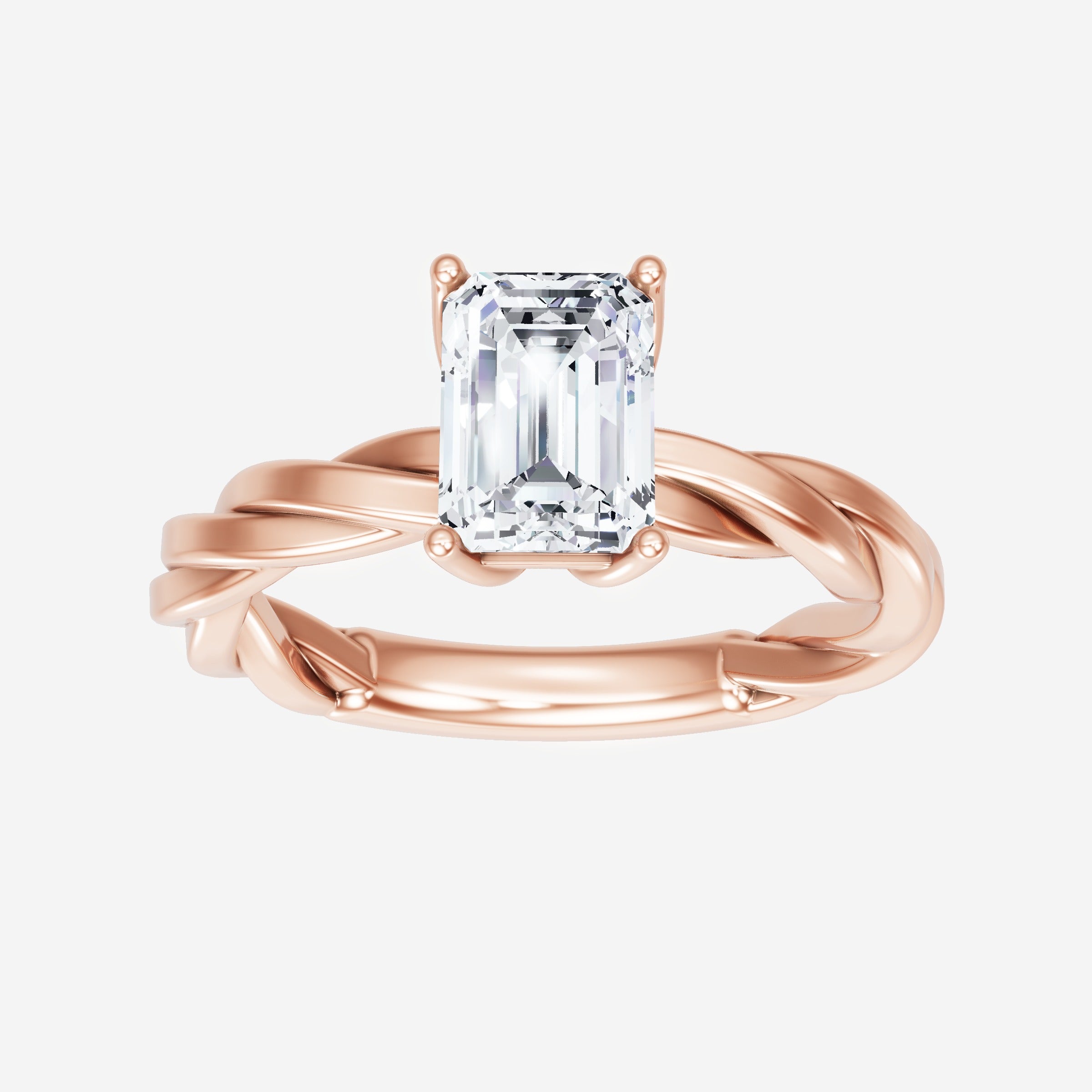 You’ve designed a ring that reflects lasting elegance and grace! Crafted from 18K Rose Gold, this exquisite Emerald lab-grown diamond is the centerpiece of this unique design. This Rope Plain Shank with a 4 Prong Flower Head head showcases the brilliance of the Emerald diamond, creating a timeless look. This stunning ring makes the perfect symbol of everlasting love and devotion.
