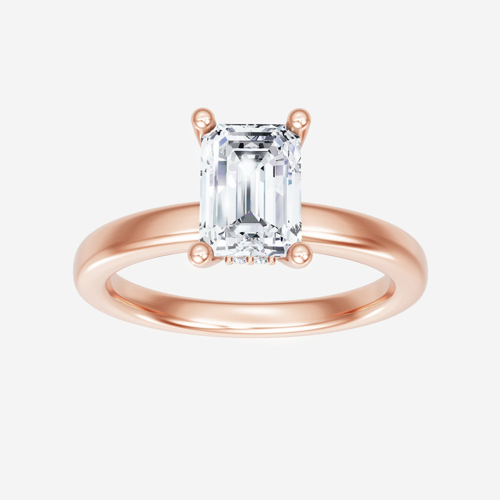 You’ve designed a ring that reflects lasting elegance and grace! Crafted from 18K Rose Gold, this exquisite Emerald lab-grown diamond is the centerpiece of this unique design. This Basic Plain Shank with a Hidden Halo head showcases the brilliance of the Emerald diamond, creating a timeless look. This elegant piece is the perfect symbol of love, strength, and timeless beauty.