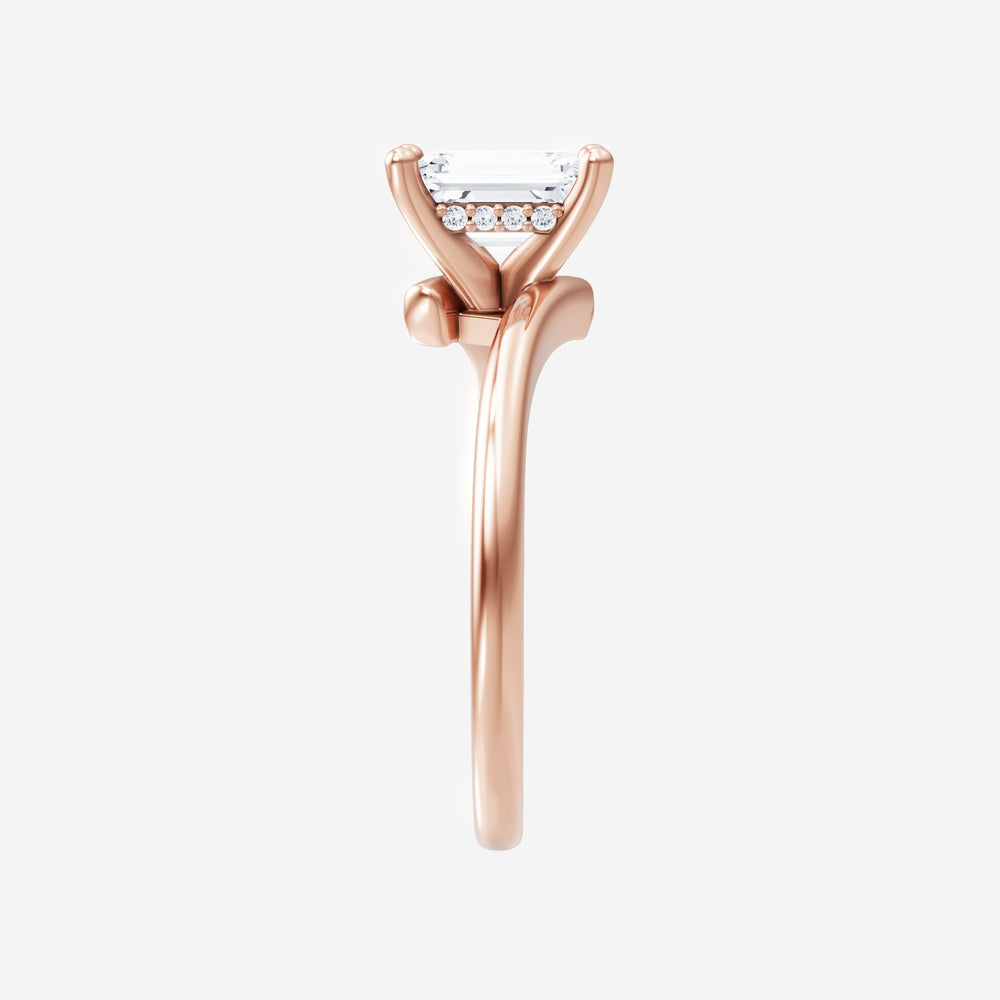You’ve designed a ring that reflects lasting elegance and grace! Crafted from 18K Rose Gold, this exquisite Emerald lab-grown diamond is the centerpiece of this unique design. This Bypass Shank with a Hidden Halo head showcases the brilliance of the Emerald diamond, creating a timeless look. A perfect choice to celebrate love, commitment, and everything in between.