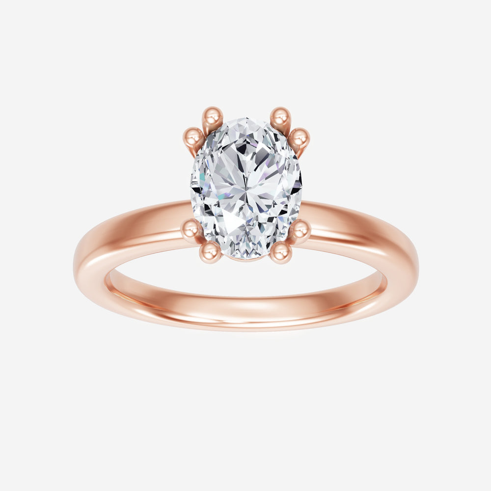 You’ve designed a ring that reflects lasting elegance and grace! Crafted from 18K Rose Gold, this exquisite Oval lab-grown diamond is the centerpiece of this unique design. This Basic Plain Shank with a 4 Prong Split Prong head showcases the brilliance of the Oval diamond, creating a timeless look. It's a piece of elegance and beauty, perfect for marking life's most beautiful occasions.