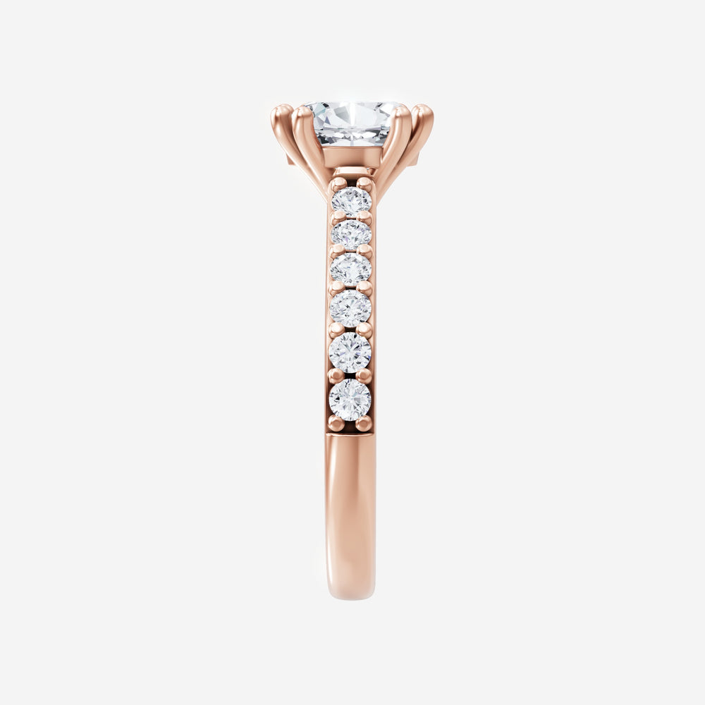 You’ve designed a ring that reflects lasting elegance and grace! Crafted from 18K Rose Gold, this exquisite Oval lab-grown diamond is the centerpiece of this unique design. This Cathedral Diamond Shank with a 4 Prong Split Prong head showcases the brilliance of the Oval diamond, creating a timeless look. This stunning ring makes the perfect symbol of everlasting love and devotion.