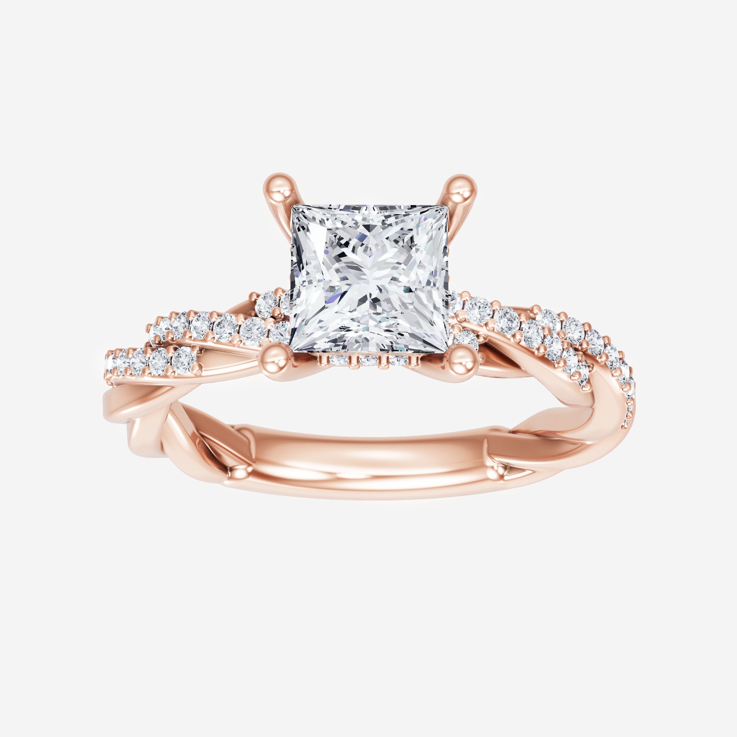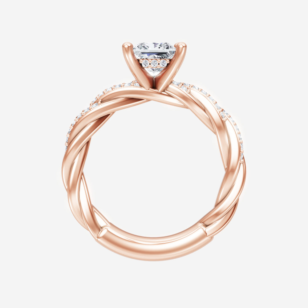 You’ve designed a ring that reflects lasting elegance and grace! Crafted from 18K Rose Gold, this exquisite Princess lab-grown diamond is the centerpiece of this unique design. This Rope Diamond Shank with a Hidden Halo head showcases the brilliance of the Princess diamond, creating a timeless look. This stunning ring makes the perfect symbol of everlasting love and devotion.